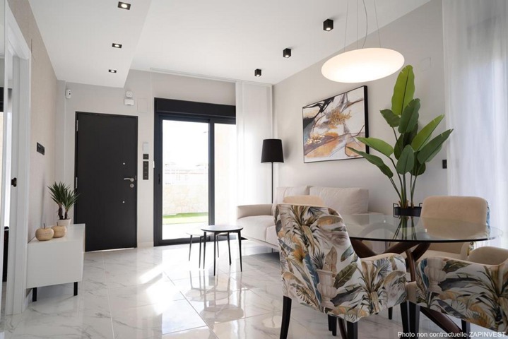 Superbe rez-de-chaussée avec un immense jardin de 111 m2 de 3 chambres et 2 salles de bain à l’entrée du village du Pilar de la Horadada.