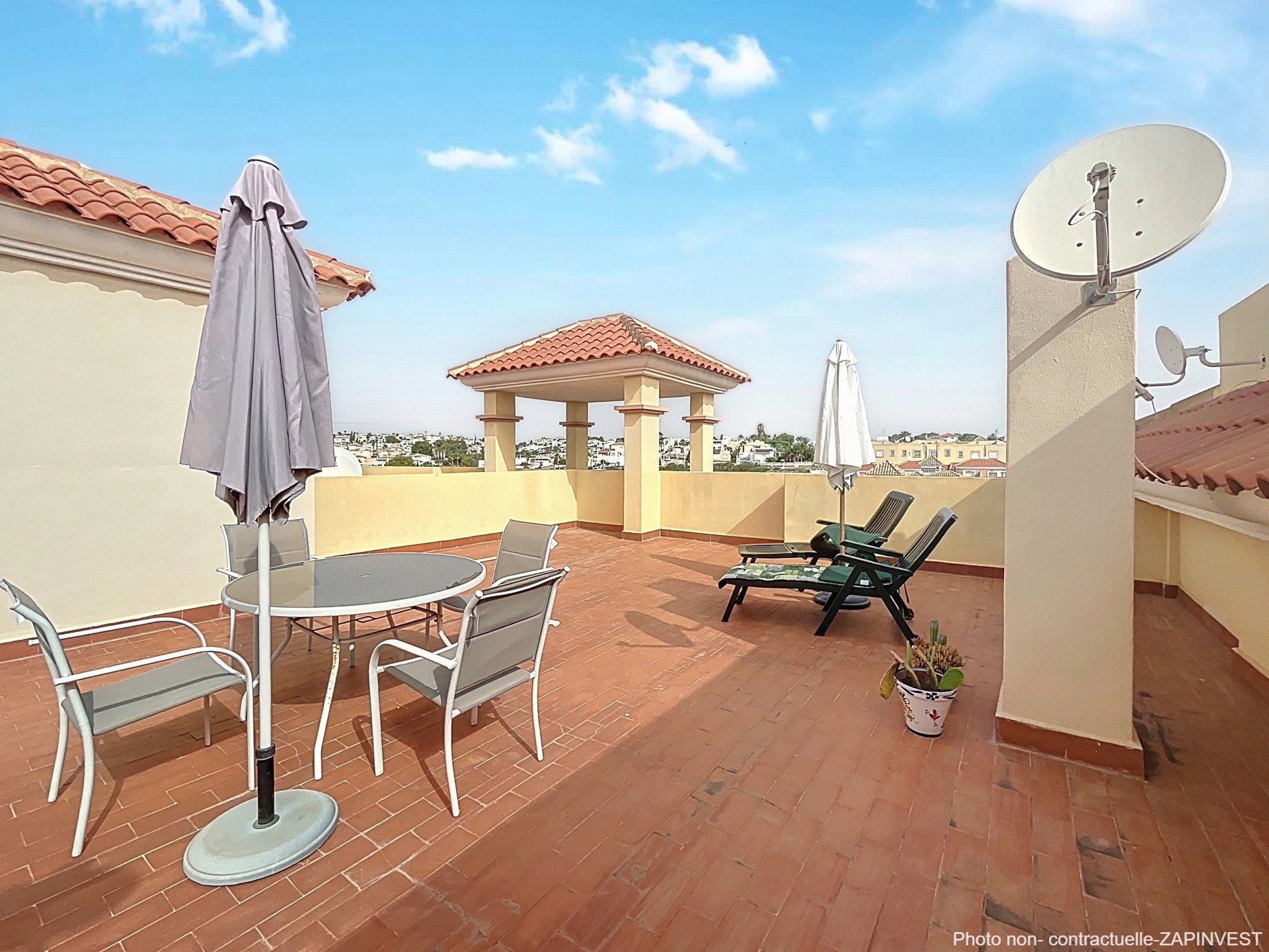 L'urbanisation ne possede pas d'ascenseur mais est sécurisée et très bien équipée de plusieurs piscines communes dont une, à proximité de l’immeuble, entourée de gazon naturel et d’Oliviers.