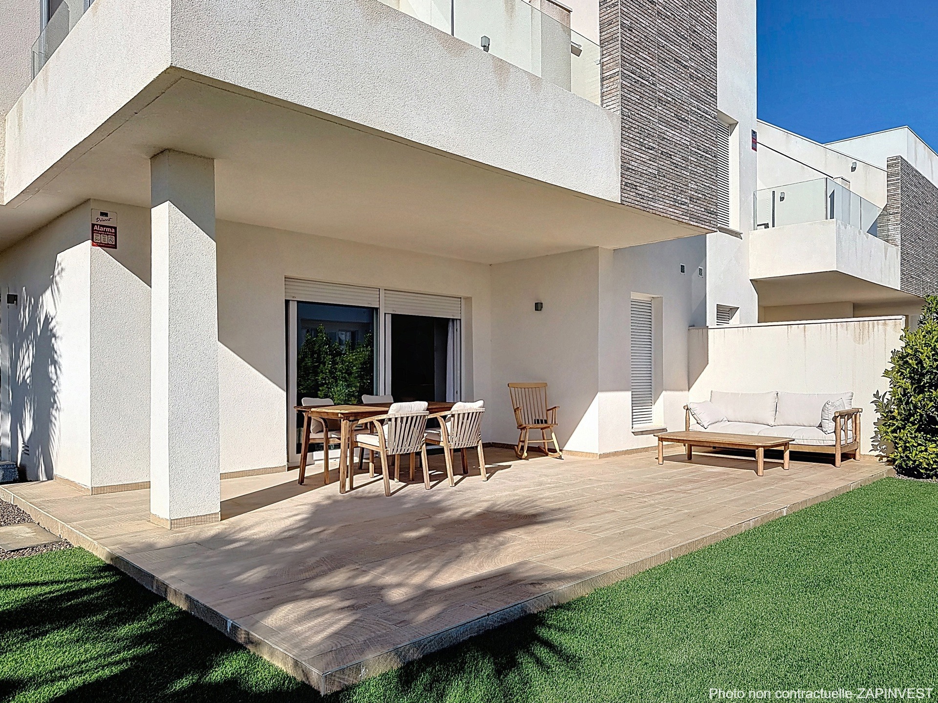 Magnifique appartement de 2 chambres et 2 salles de bain, en rez-de-chaussée, avec un immense jardin privatif à La Finca Golf Resort ; l’un des complexes hôteliers 5 étoiles les plus exclusifs d’Espagne au sud de la province d’Alicante.