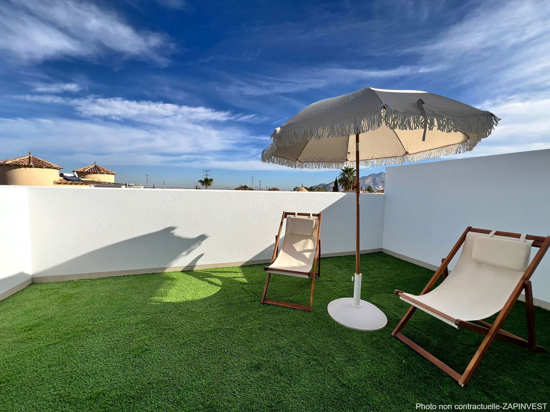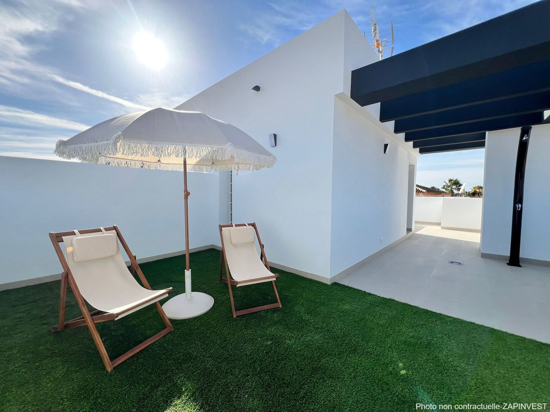 L'extérieur, particulièrement soigné, offre la possibilité d'ajouter une piscine privée en option pour profiter pleinement du climat méditerranéen.