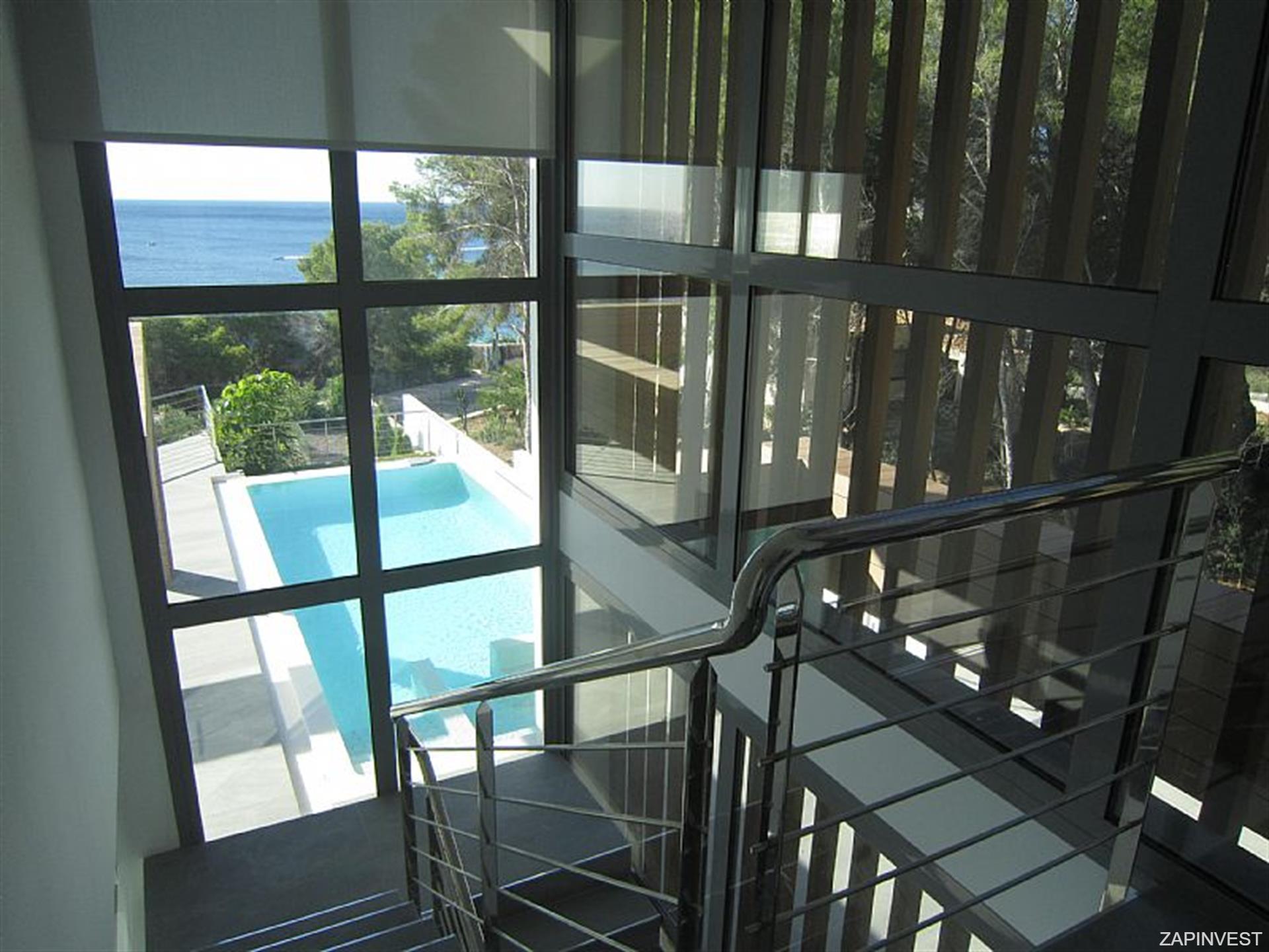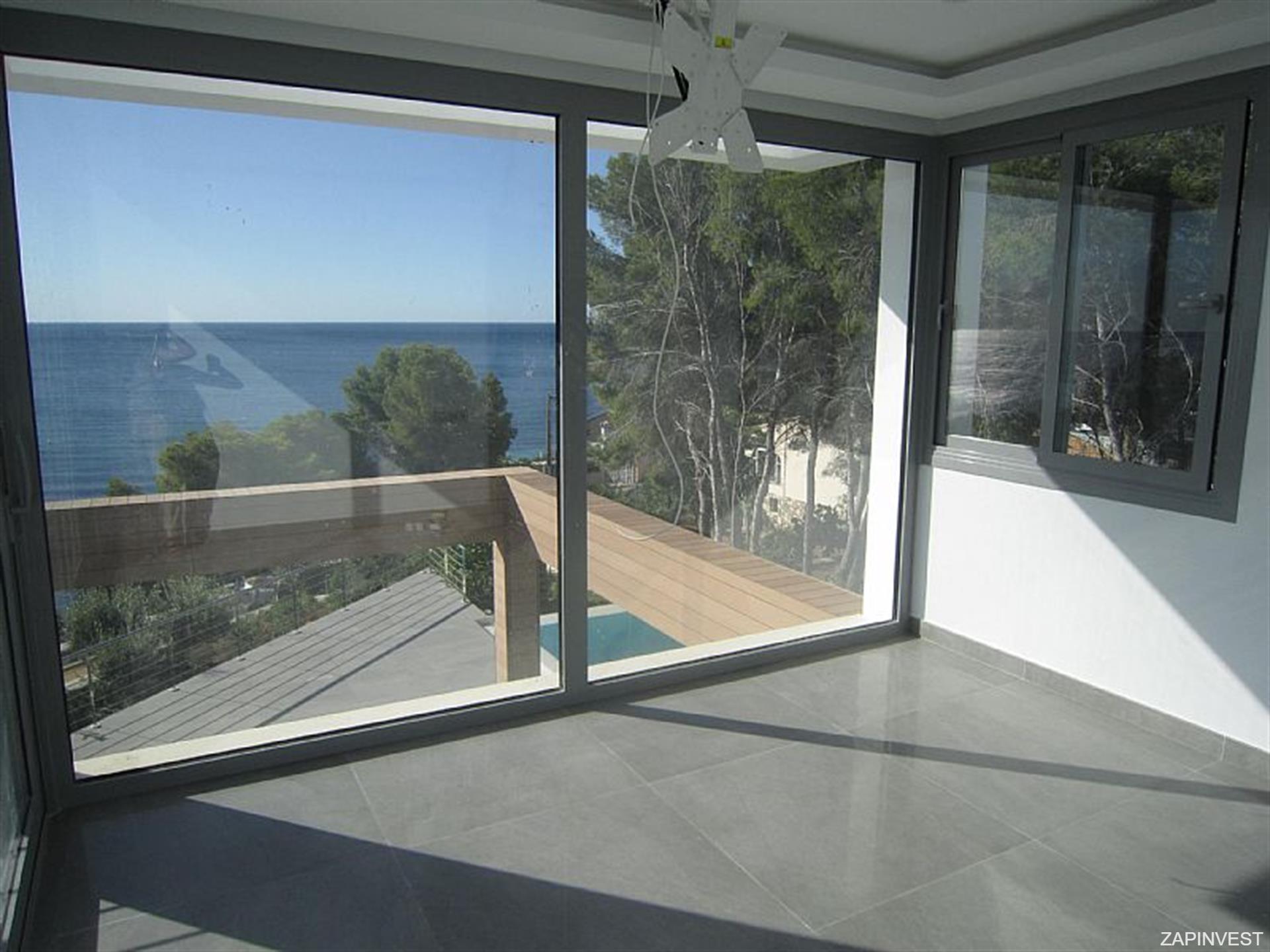 Cette magnifique villa avec vues superbes sur la mer se compose de 4 chambres et 3 salles de bains, ainsi que d´une immense terrasse de 130m2 avec piscine au sel par electrolyze, jacuzzi et sauna.