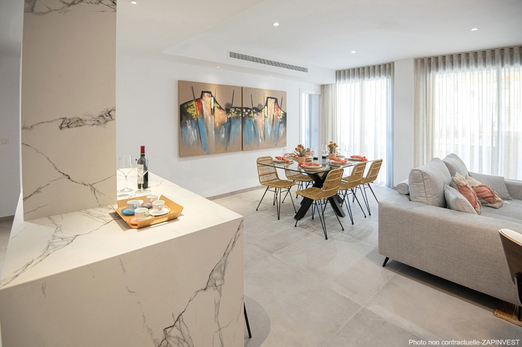 Appartement Moderne en centre-ville de 3 chambres et 2 salles de bain, super équipé avec vue sur le jardin et la piscine commune.