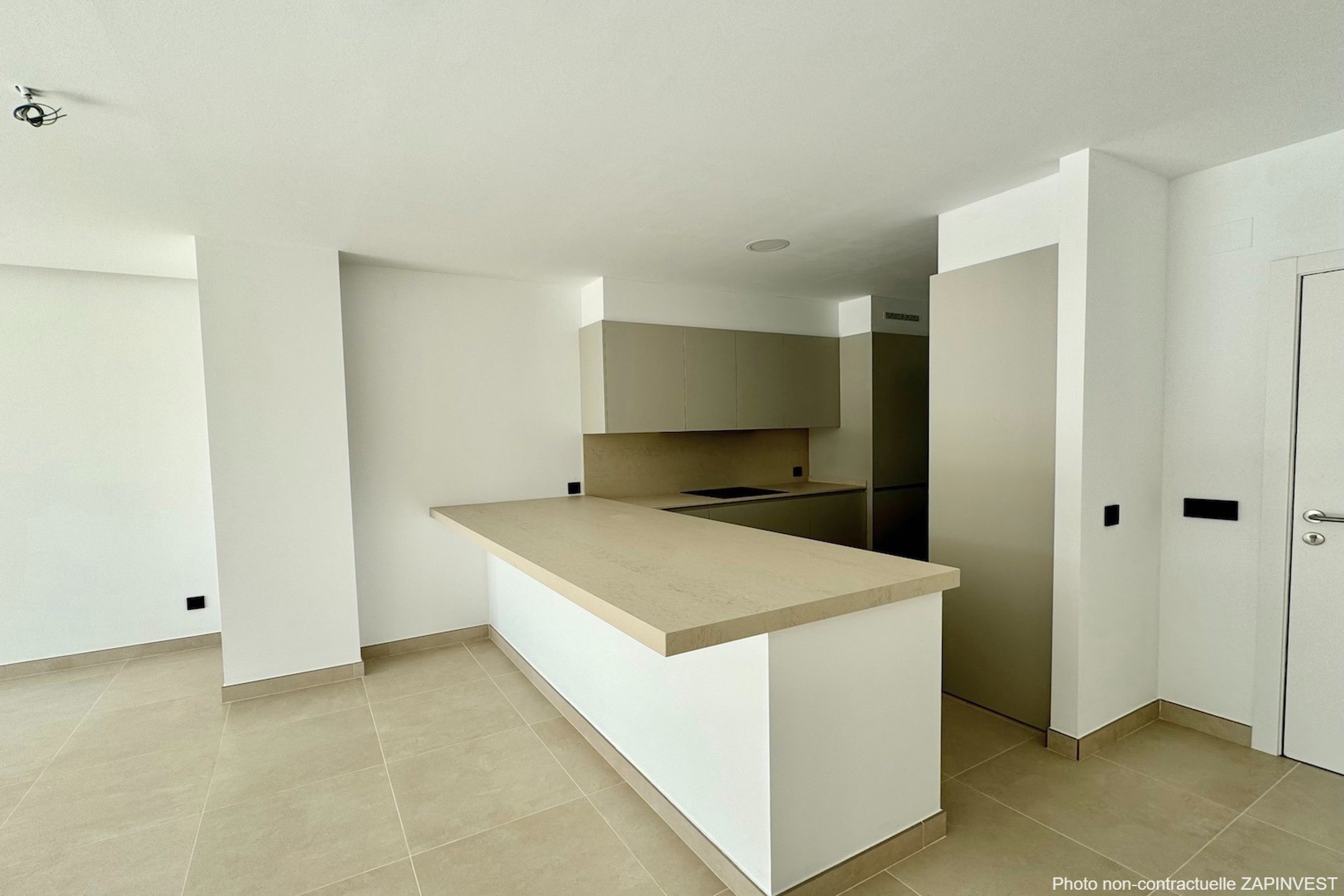 La cuisine est entièrement équipée (appareils électriques AEG de haute qualité) et est attenante à la buanderie qui contient le chauffe-eau de grande capacité et de première technologie éco et est attenante à la buanderie ainsi qu'à un débarras.