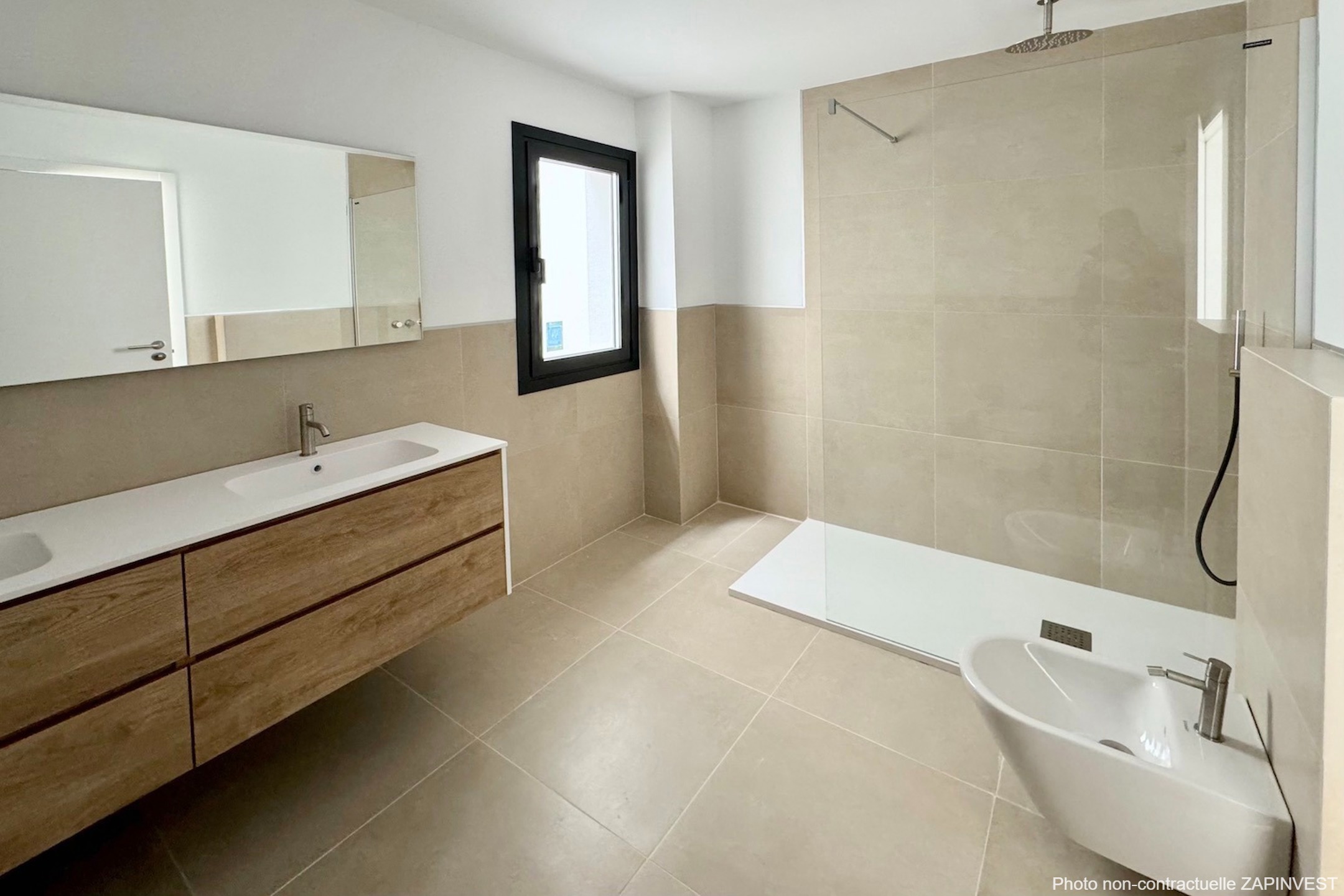 La chambre parentale a sa salle de bains ensuite et donne également sur la terrasse. La deuxième chambre dispose également de sa salle de bains.