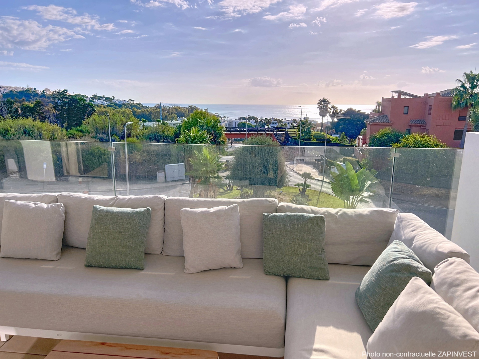 La belle terrasse de 37 m2 offre de magnifiques vues mer et golf !