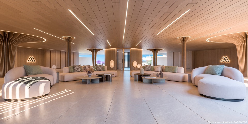 La résidence intègre des zones communes entourées d'espaces verts, 2 grandes piscines à débordement, une piscine intérieure, un spa, un espace wellness, une salle ''co-working'' et un gymnase, et même un espace car-wash.