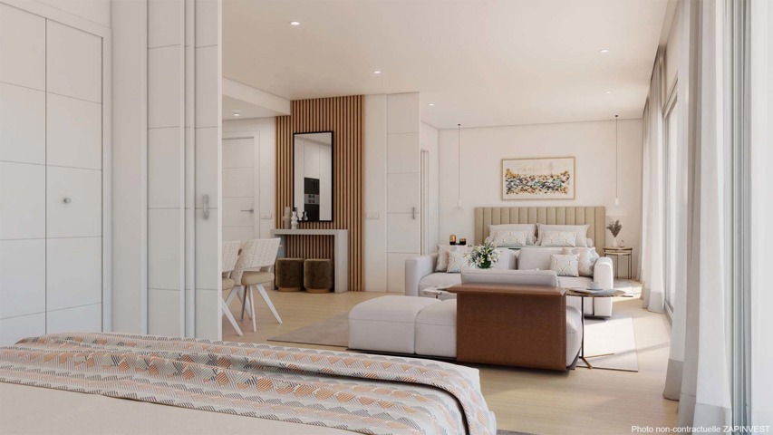 Ce magnifique appartement ultramoderne et très lumineux dispose de deux chambres et une salle de bain en suite, un spacieux et lumineux séjour, une cuisine toute équipée et une belle grande terrasse.