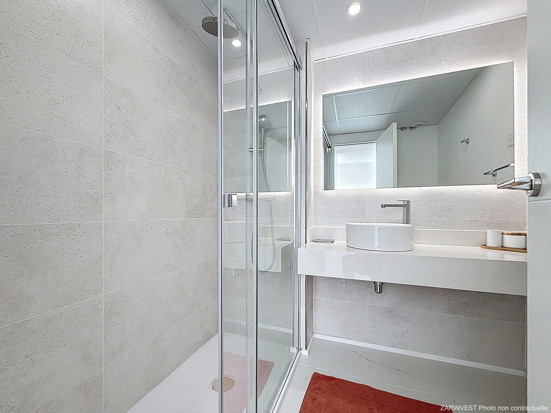 La résidence propose des prestations communes particulièrement appréciées : espaces verts soignés, grande piscine à débordement, salle de coworking pour télétravailler confortablement, ainsi qu’un gymnase. Un emplacement de parking en sous-sol et une cave complètent l’offre, inclus dans le prix.
