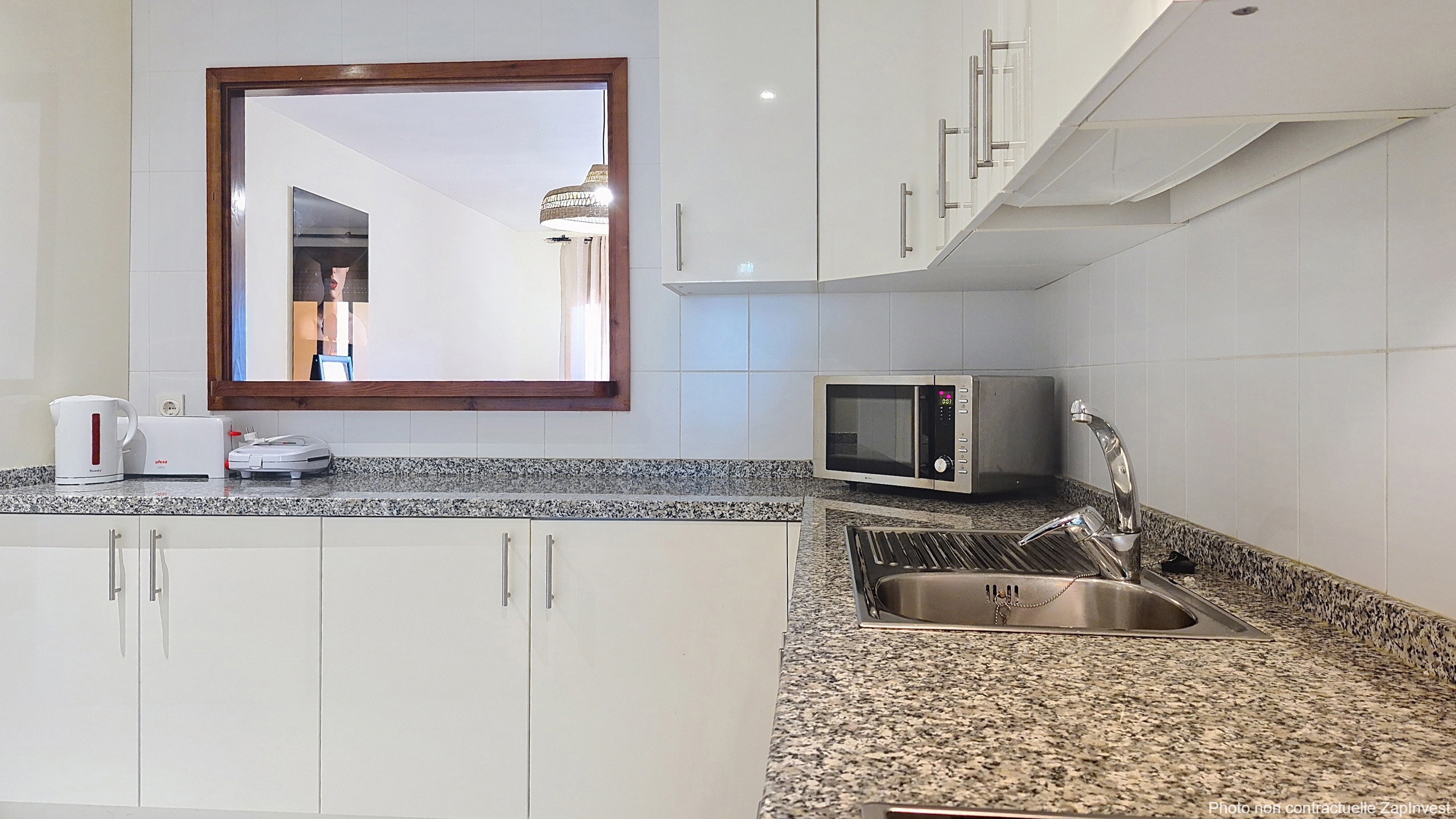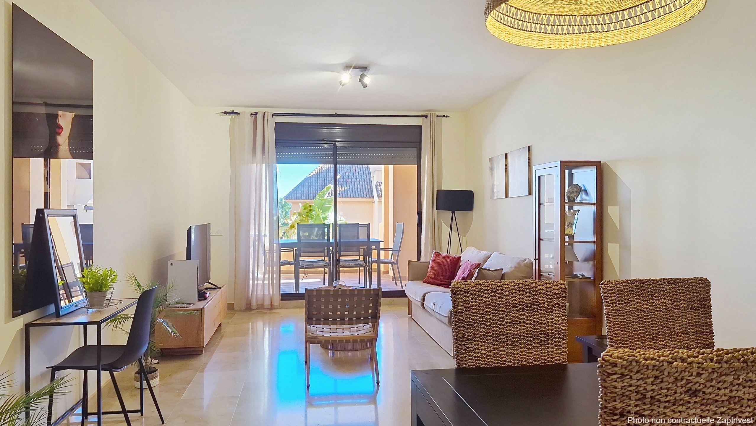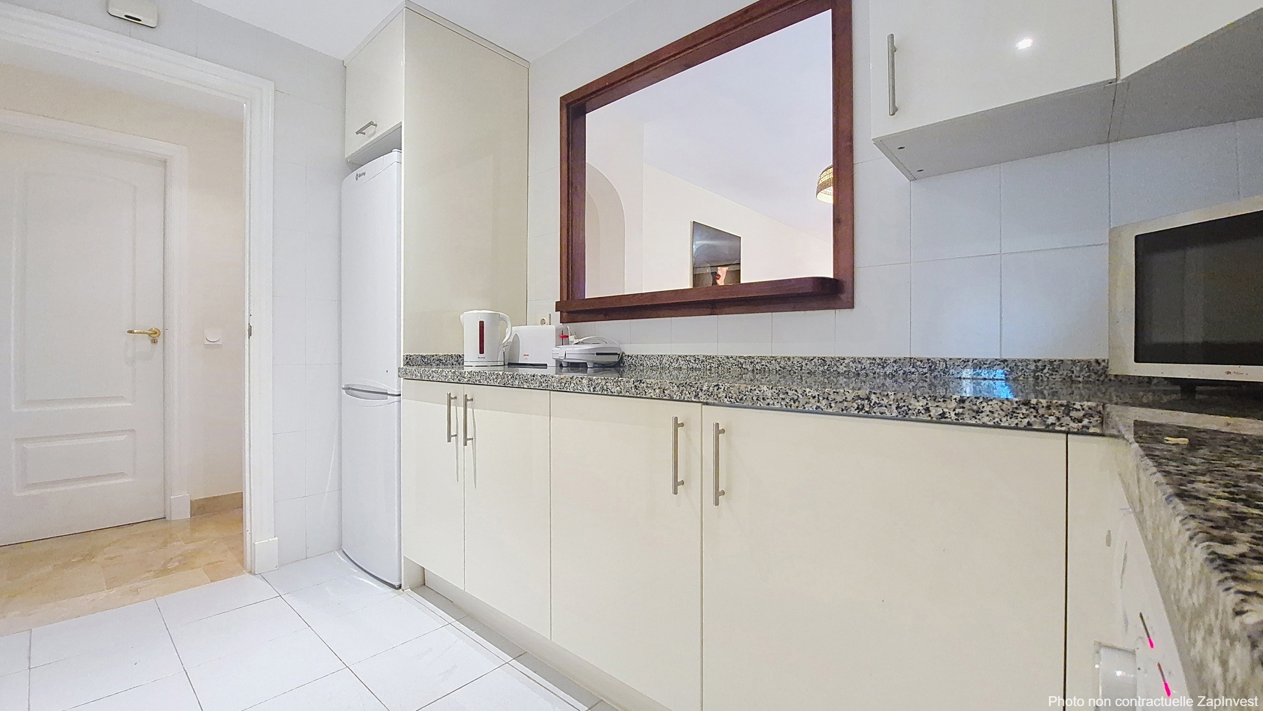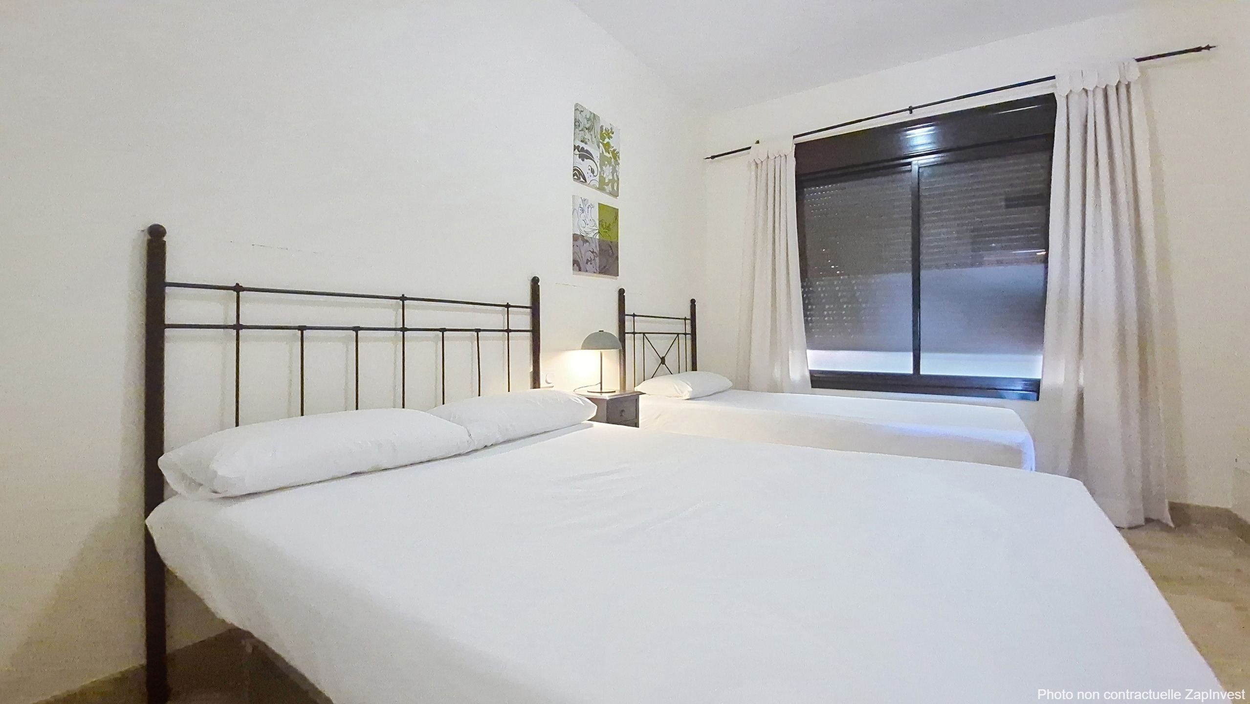 La chambre principale possède une salle de bain en suite et un accès direct à la magnifique terrasse. La seconde chambre donne sur les espaces verts de l’urbanisation. Vous trouverez également une salle de bain pour les invités, une buanderie fonctionnelle et une cuisine avec fenêtre ouverte sur un vaste séjour lumineux.
