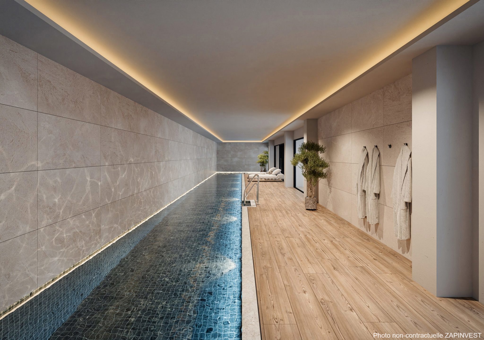 Au niveau des espaces communs de style resort, conçus pour le bien-être et le plaisir de ses résidents : une spectaculaire piscine extérieure à débordement, une piscine intérieure et un spa avec bain turc, en passant par la salle de sport, le salon social, l'espace de coworking et le bar exclusif de la piscine, chaque espace est conçu pour concilier détente, loisirs et productivité.