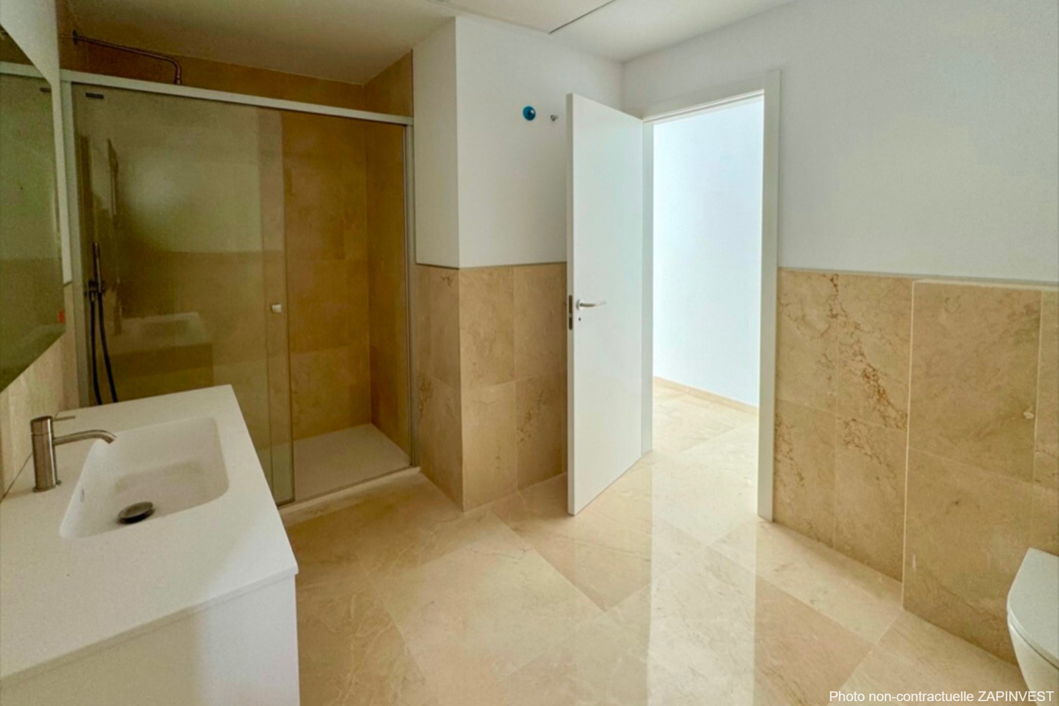 La cuisine est entièrement équipée (appareils électriques AEG de haute qualité) et est attenante à la buanderie qui contient le chauffe-eau de grande capacité et de première technologie éco ; la climatisation est indépendante avec pompe à chaleur Mitsubishi ; double cloison en briques creuses avec isolation thermique, menuiserie extérieure en aluminium avec rupture de pont thermique; des fenêtres coulissantes oscillo-battantes, double vitrage pour une meilleure protection thermique et acoustique, des armoires encastrées avec intérieur en mélamine textile.