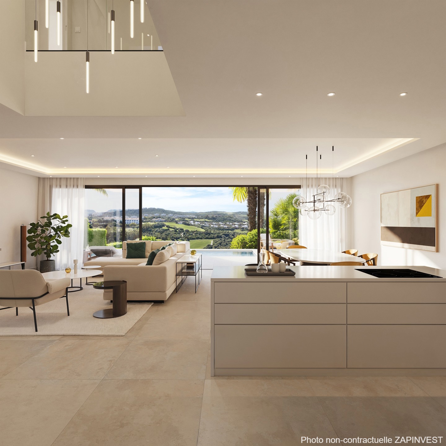 Au rez-de-chaussée, vous entrez dans le magnifique espace (70m2) comprenant la cuisine équipée (composée de plaque à induction, four, hotte, lave-vaisselle, lave-linge, évier, frigo intégré, micro-ondes intégré,…), la salle à manger, le salon, espace qui vous invite immédiatement à vous poser chez vous que ce soit dans le salon ou dans le jardin avec sa piscine privée (24m2), le tout orienté Sud. Cet étage possède également un WC invité.