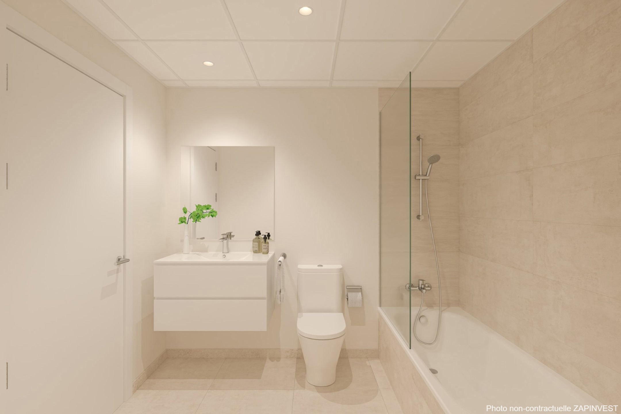 L'équipement de la salle de bains est complété par des miroirs rétro-éclairés, ainsi que par un chauffage par le sol dans les salles de bains du premier étage.