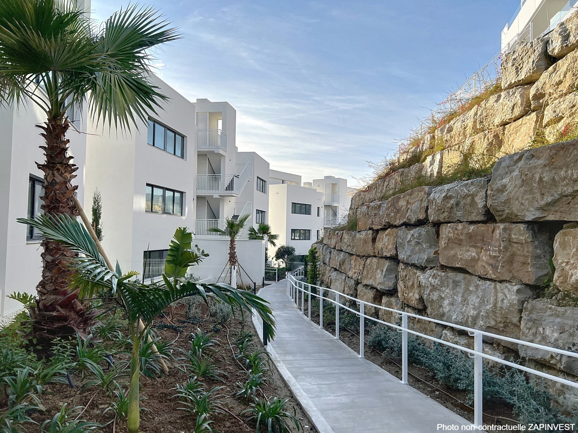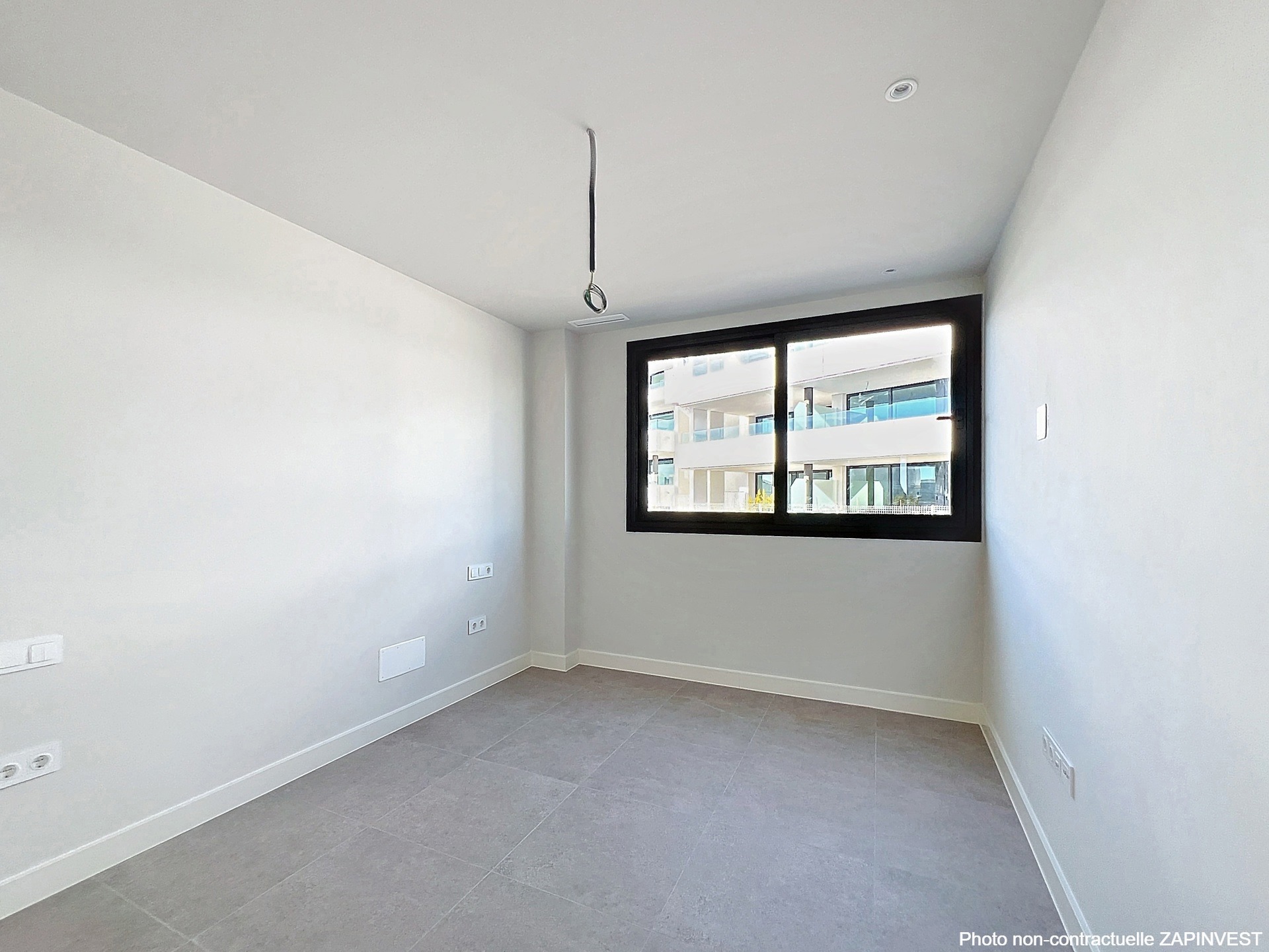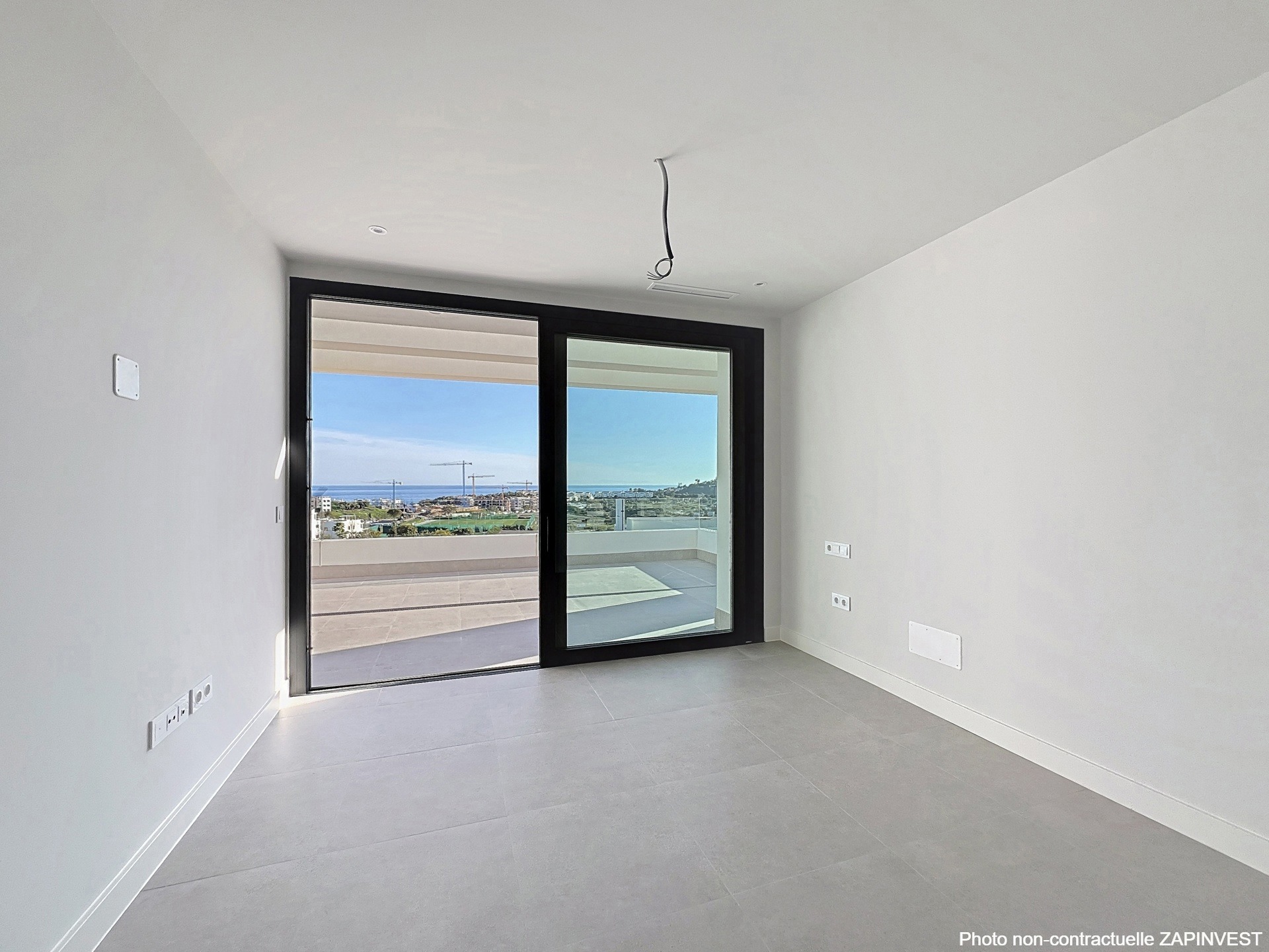Magnifique penthouse dans une toute nouvelle résidence. Il est composé de trois chambres et deux salles de bains pour une superficie de 110m2, d'un petit hall d’entrée qui donne à la fois sur l’espace cuisine et sur le salon séjour, avec accès direct sur la splendide terrasse de 44m2 avec un escalier vers le solarium de près de 100m2 avec pré-installation pour une cuisine d’été bénéficiant de vues panoramiques sur le golf, la nature et la mer (espace semi-ouvert et découvert).