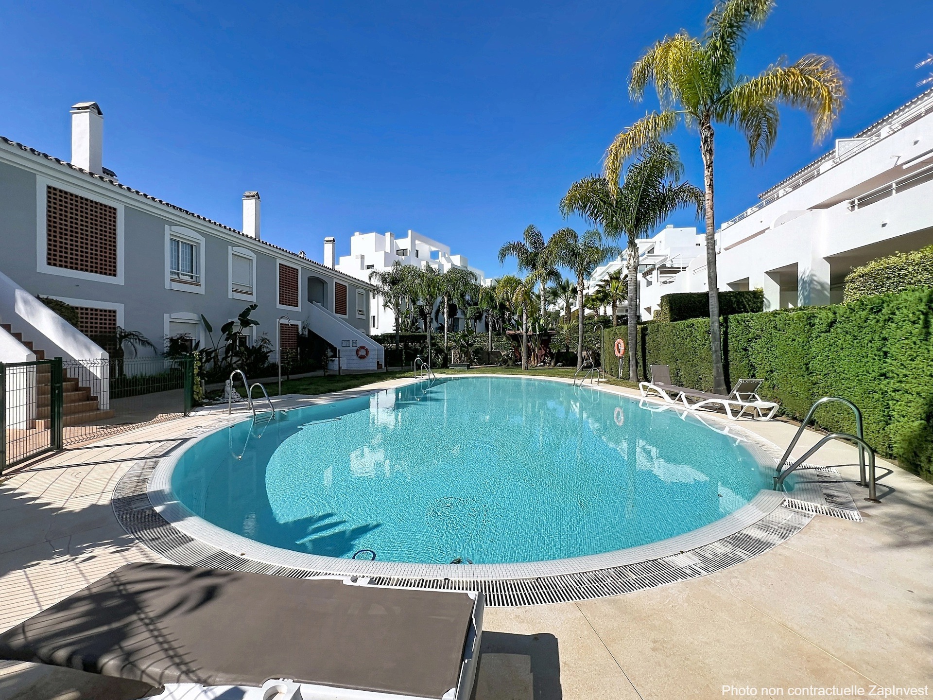 Cette résidence d’exception est privée et sécurisée 24h/24 avec service de conciergerie, elle se distingue par son charme andalou, son environnement paisible et ses magnifiques espaces verts agrémentés de palmiers et de végétation tropicale. Une grande piscine vient compléter ce cadre idyllique.