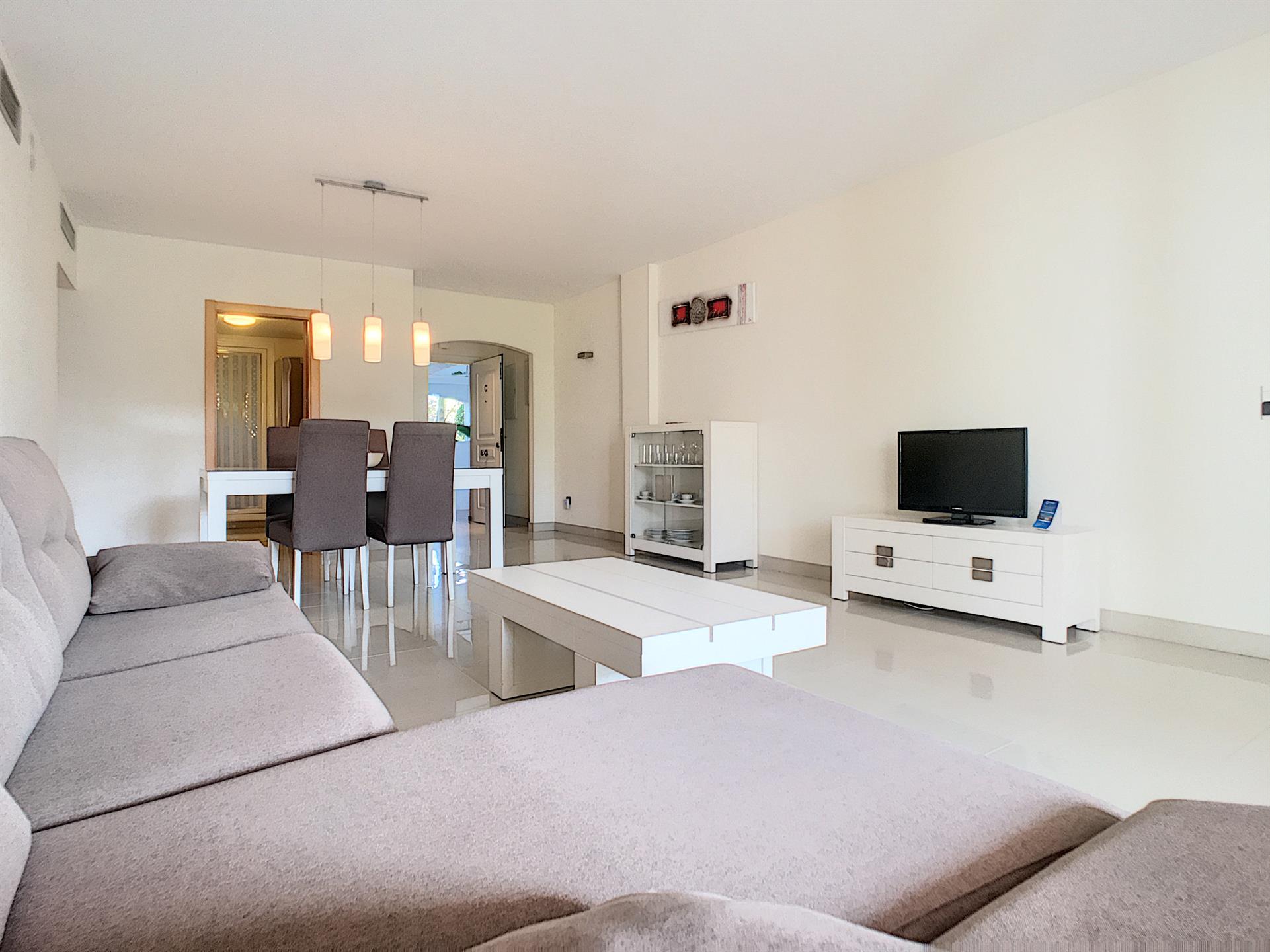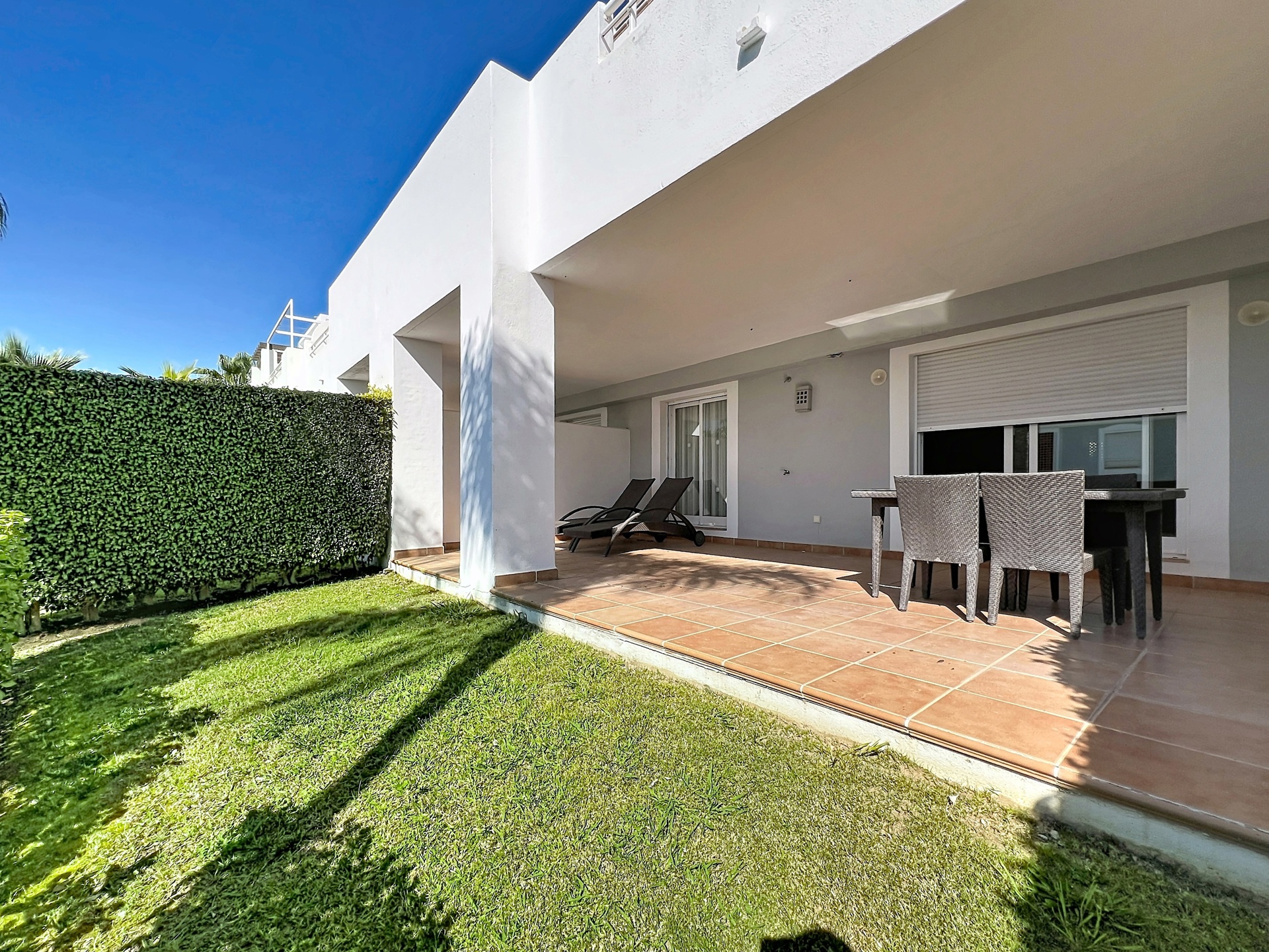 Idéalement situé entre Estepona et Marbella, à proximité de la plage et d’un golf, ce superbe appartement au rez-de-chaussée offre un cadre de vie privilégié, alliant confort, calme et élégance.