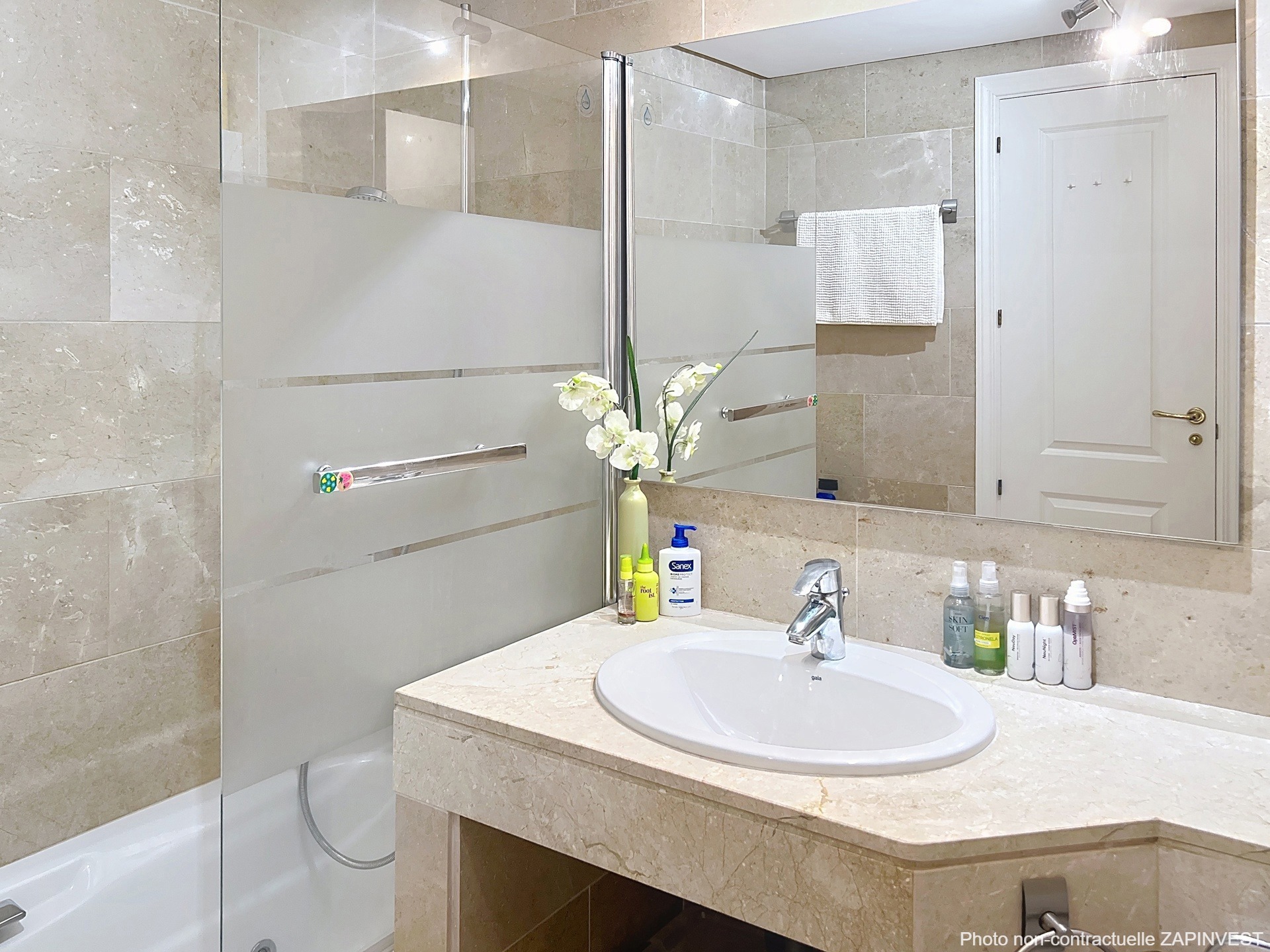 Les finitions sont de très bonne qualité, avec des matériaux nobles tels que le marbre beige.