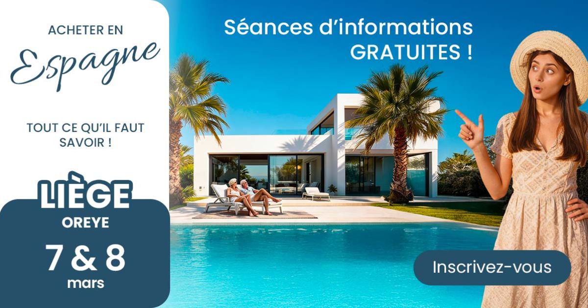 Au cours de ces différents types de rencontres, un idée est commune, vous donner un maximum d'informations sur l'immobilier en Espage et vous permettre d'avancer sereinement dans votre projet sous le soleil d'Espagne. Vous y rencontrerez nos spécialistes de l'immobilier espagnol qui vous présenteront les superbes possibilités d'investissement sur la Costa del Sol, la Costa Blanca Sud et la Costa Blanca Nord. Nous aborderons tous les sujets importants concernant les aspects juridiques, financiers, fiscaux,..