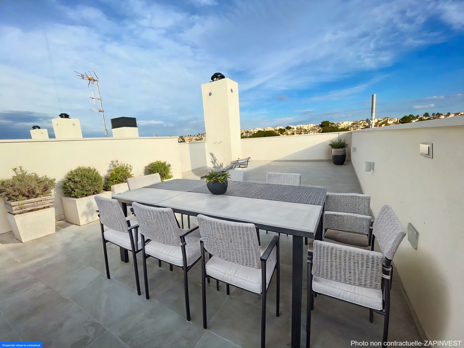 Luxueux appartement en premier étage avec une terrasse au niveau du salon de 22 m2 et un solarium de 66 m2 donnant sur la piscine commune dans la ville de Ciudad Quesada afin de profiter toute l'année du soleil de la Costa Blanca.