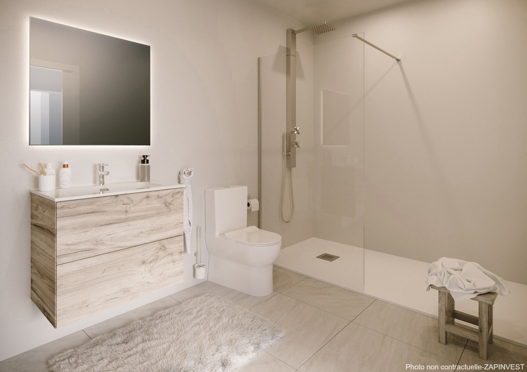 Appartement de 2 chambres et 2 salles de bains complètes avec une terrasse de 18 m2 donnant sur les piscines.