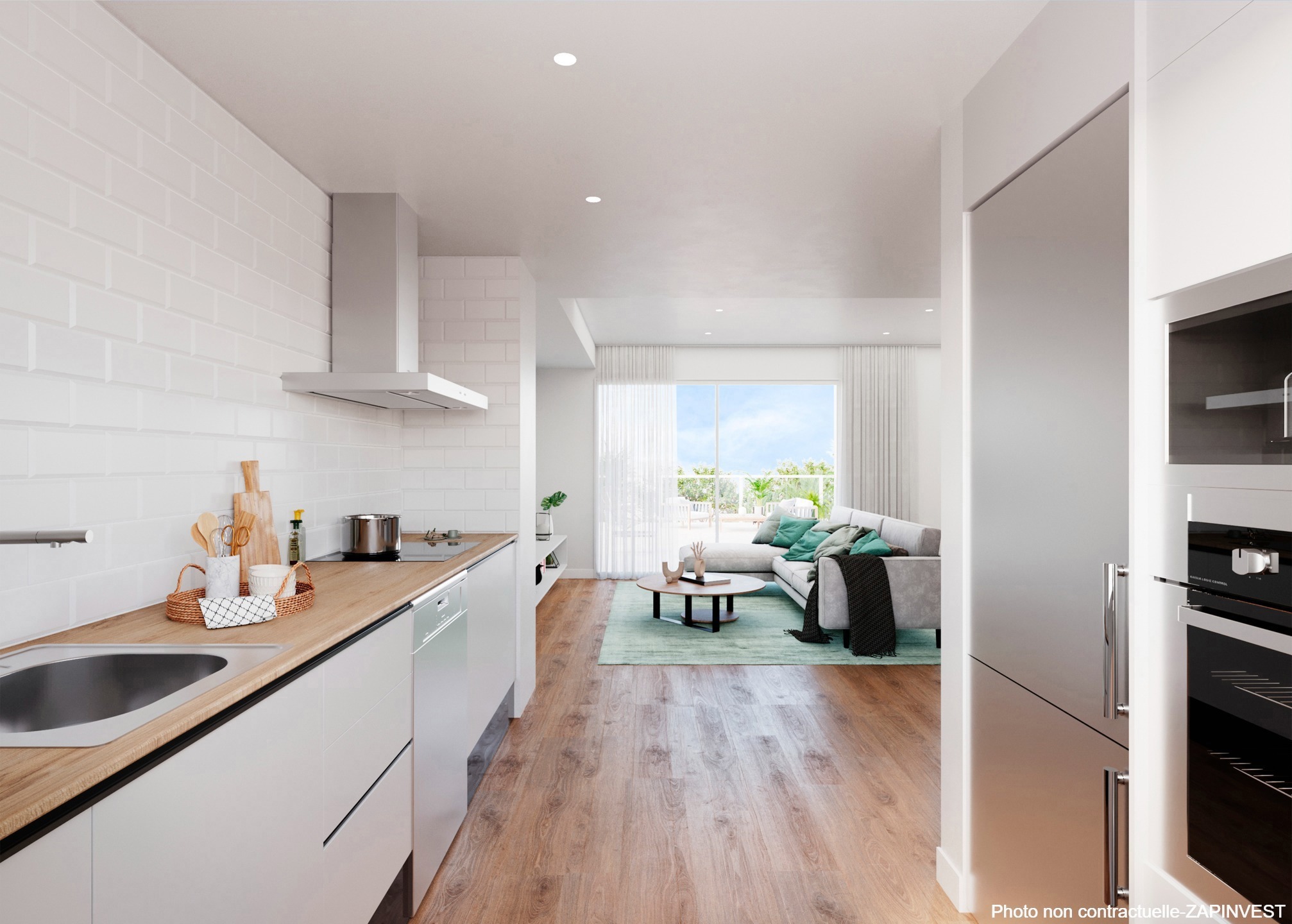 Tous les biens sont équipés d'une cuisine ouverte entièrement meublée avec une plaque vitrocéramique, la hotte, le four et le micro-onde.