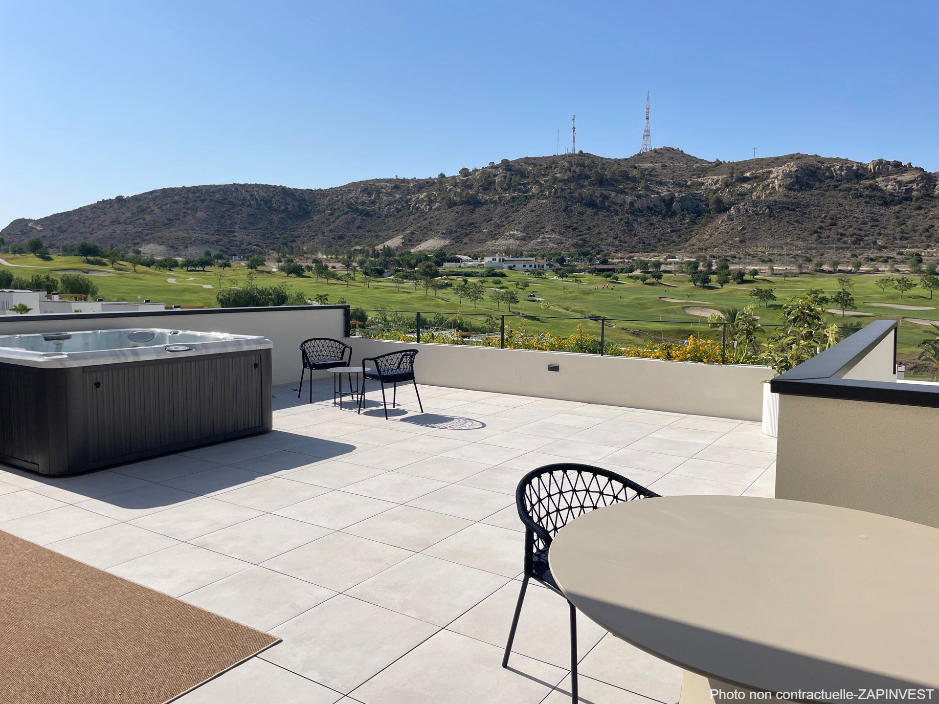 Magnifique duplex, clés en main, composé de 2 bâtiments de 2 étages avec une très grande terrasse donnant sur le golf et la piscine commune.