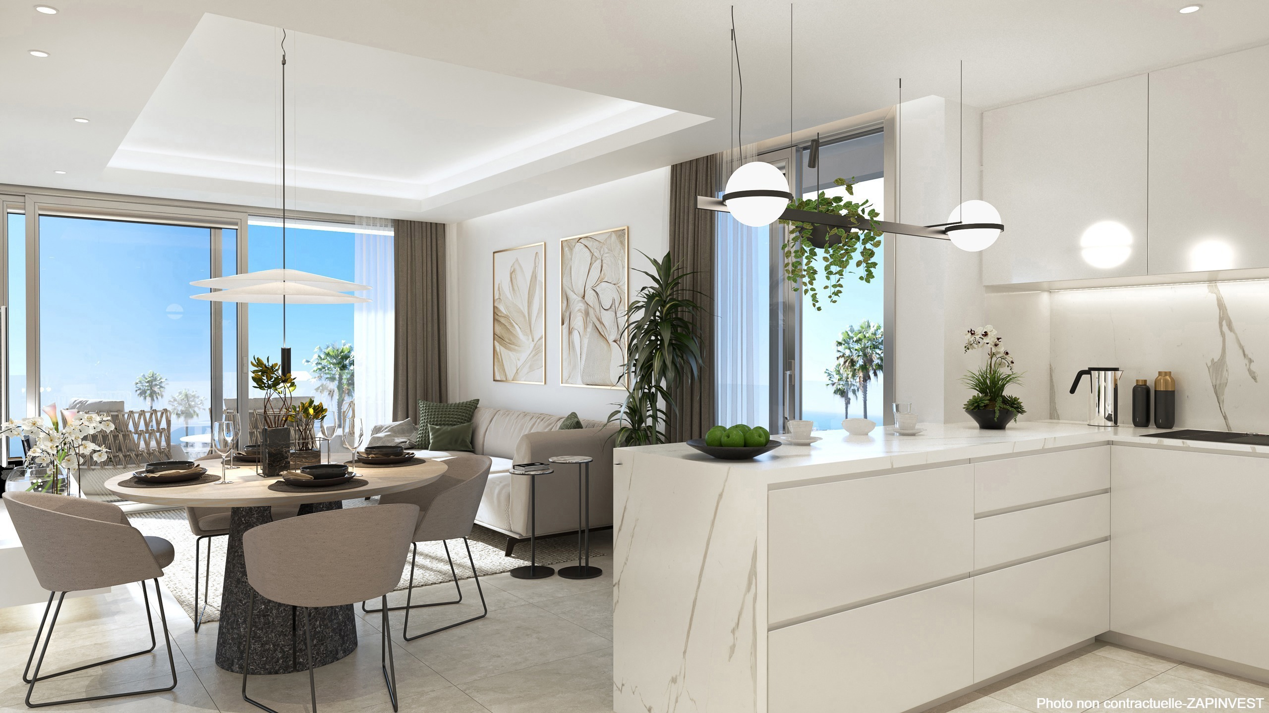 Superbe appartement de 2 chambres et 2 salles de bain avec une terrasse solarium de 70 m2 et vue sur la mer.