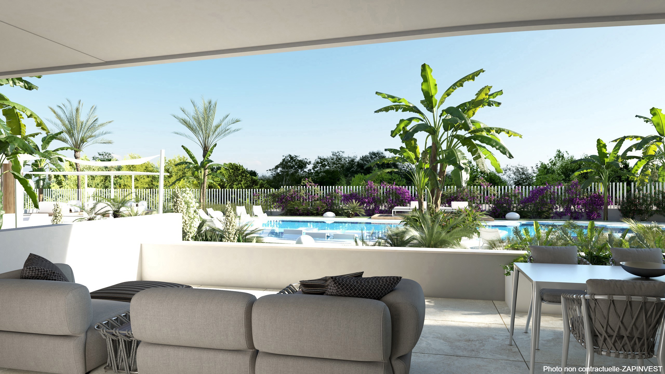 Il offre de grands espaces lumineux avec une terrasse au niveau du salon de 15 m2 et ensuit e un accès sur la terrasse du solarium.