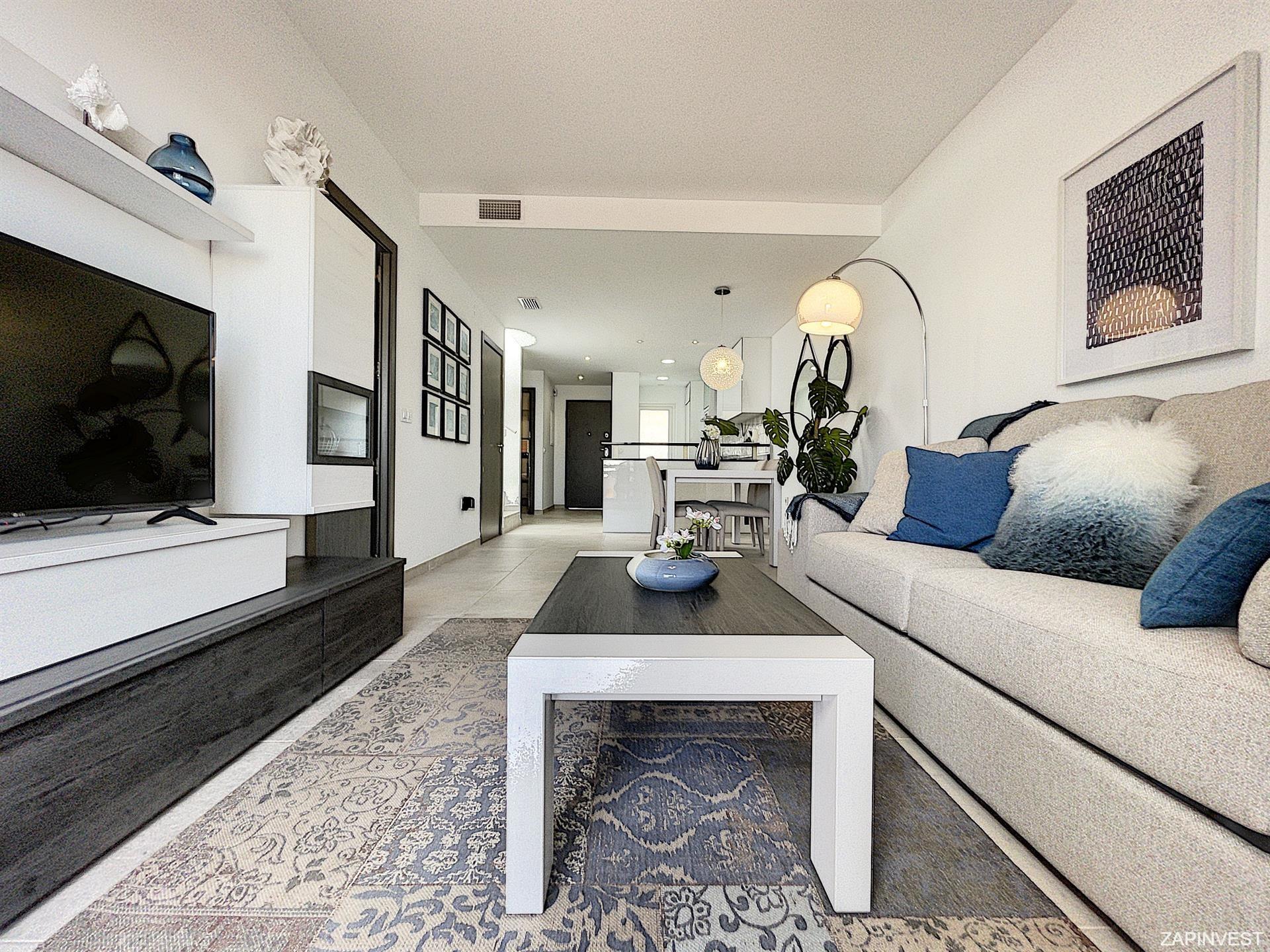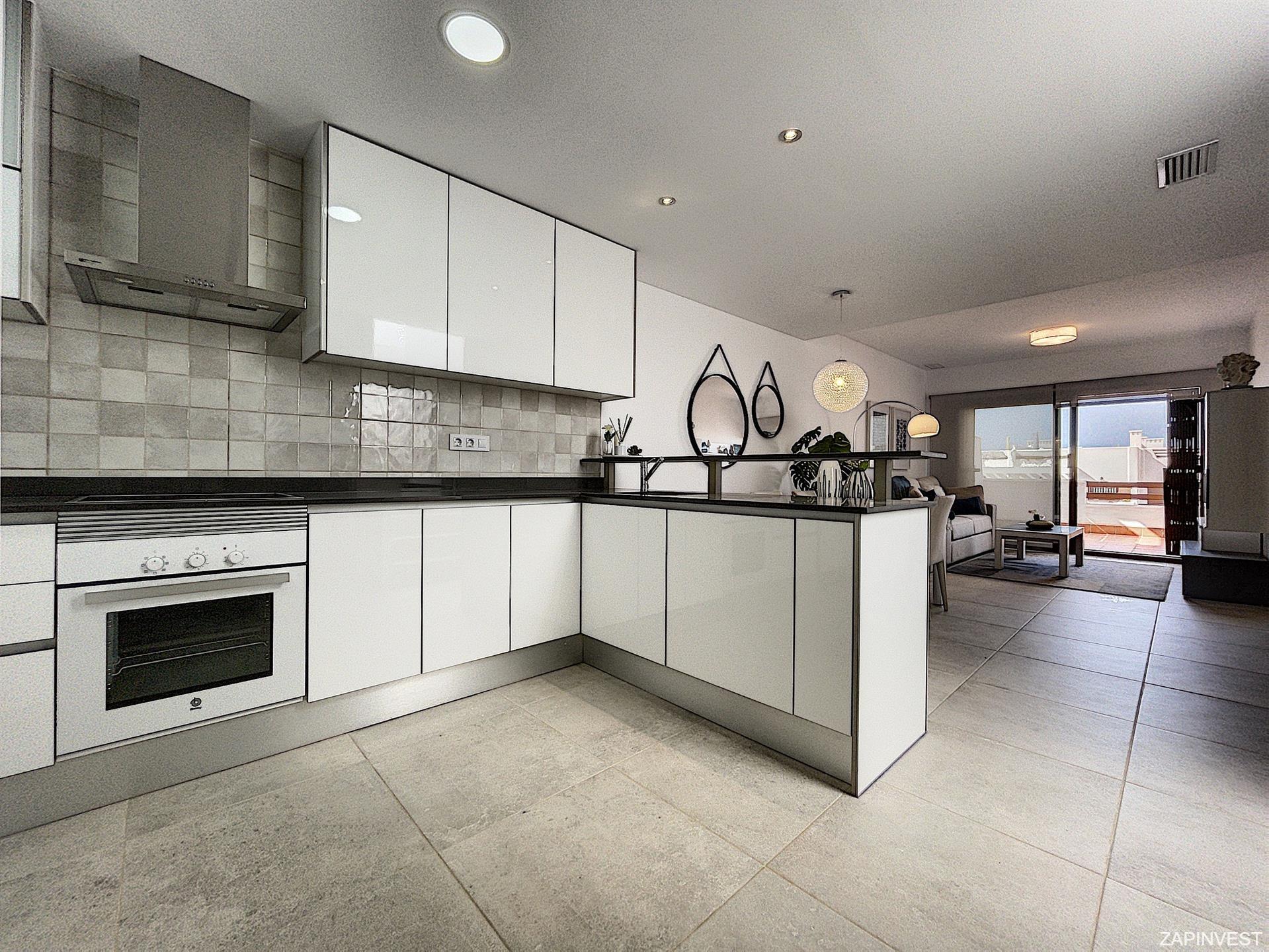 Cet appartement bungalow en rez-de-chaussée de style Andalou dispose de 2 chambres et 2 salles de bains, ainsi que d´une belle cuisine américaine.