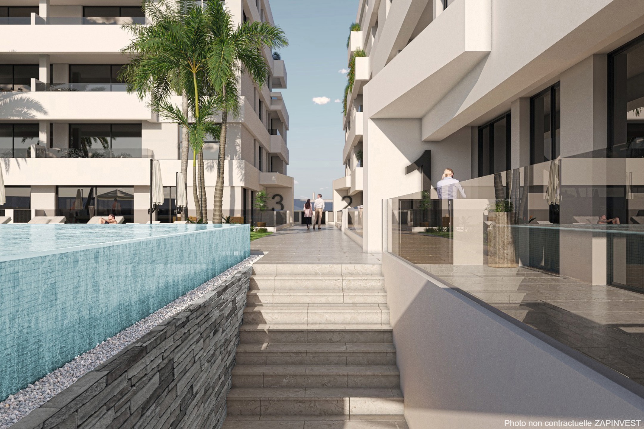 Appartement Moderne en centre-ville de 3 chambres et 2 salles de bain, super équipé avec vue sur le jardin et la piscine commune.