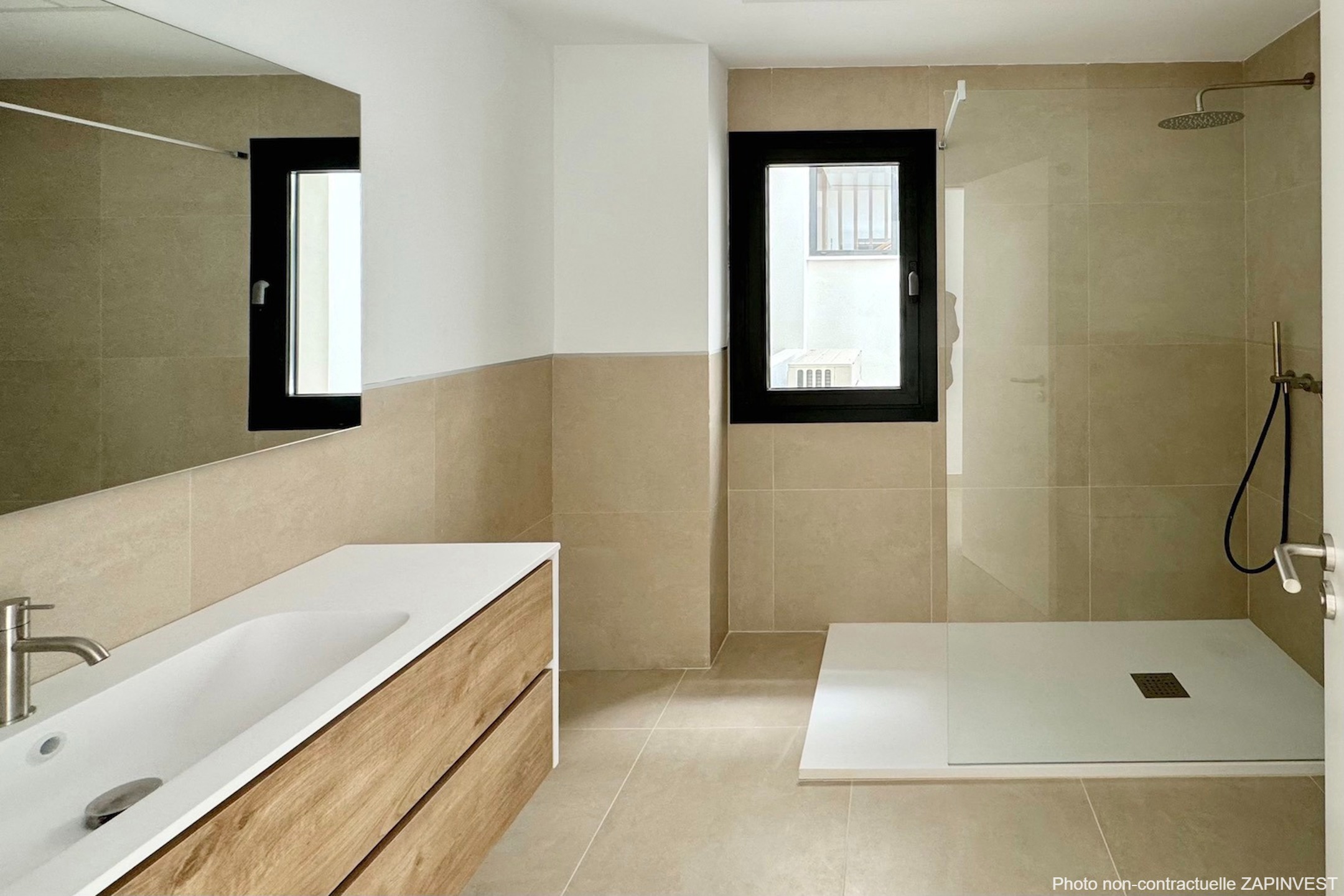 La chambre parentale a sa salle de bains ensuite et donne également sur la terrasse. La deuxième chambre dispose également de sa salle de bains.