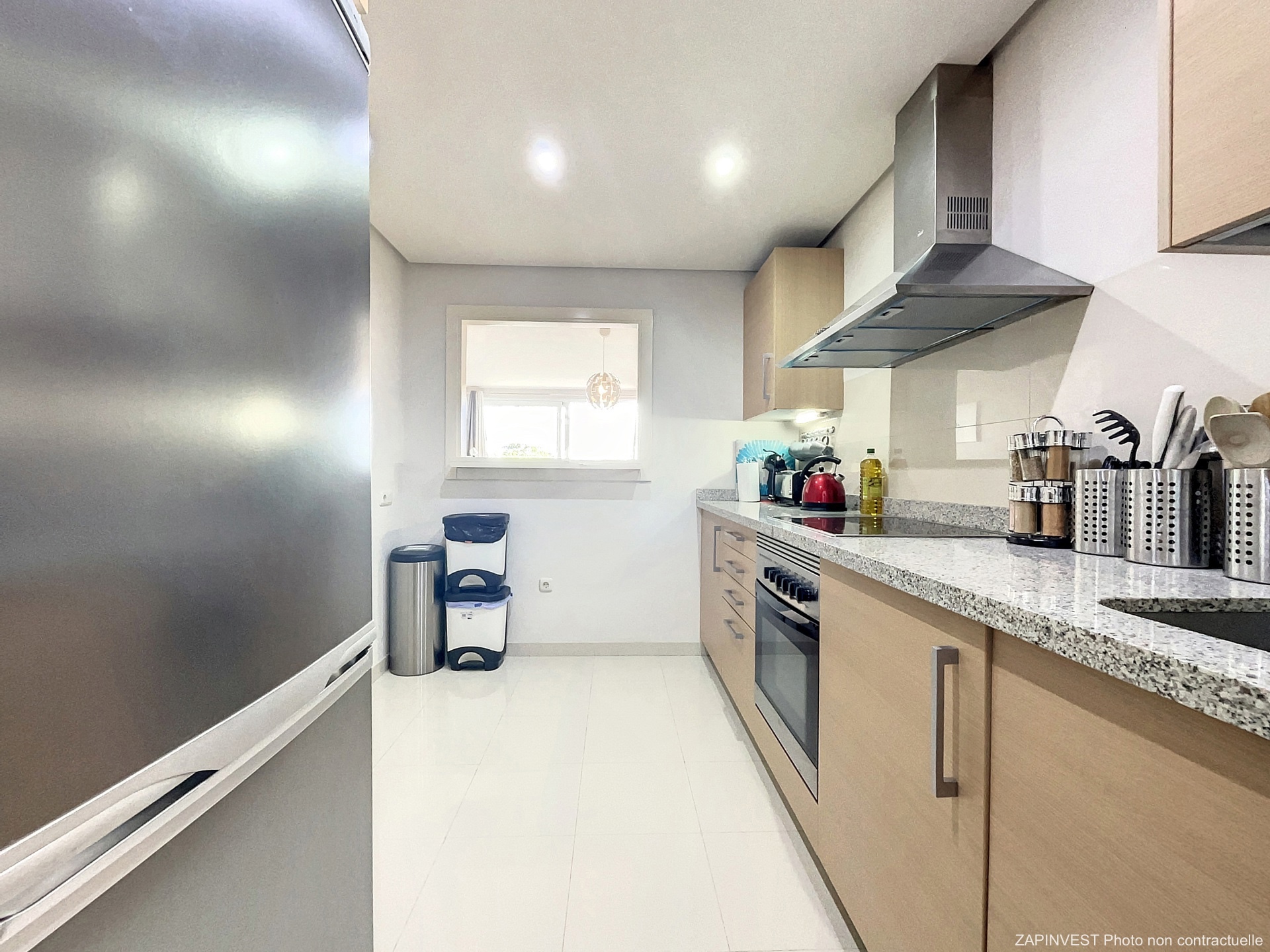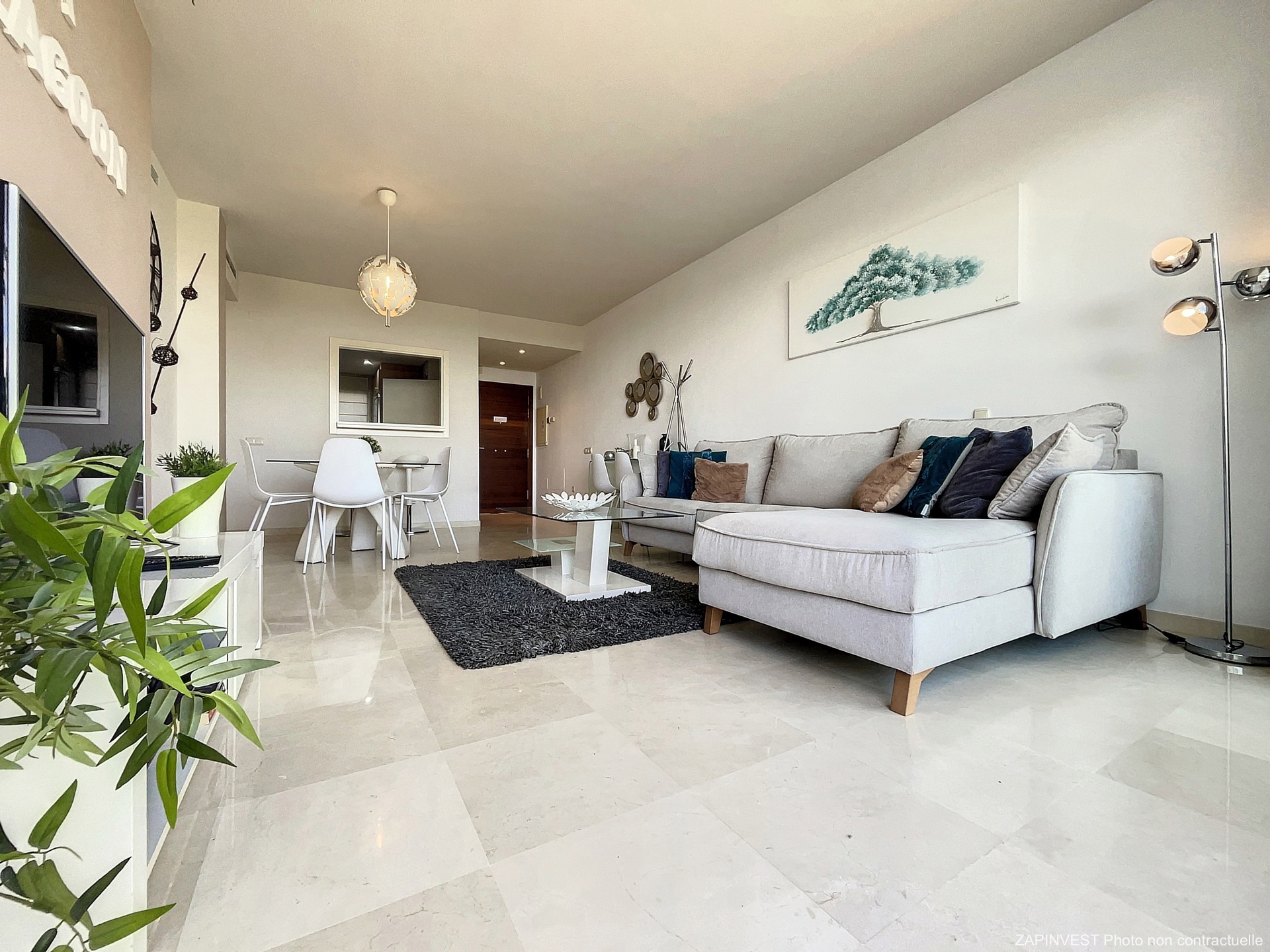 Il se compose de 2 chambres, 2 salles de bain et d’un bel espace de vie avec cuisine entièrement équipée. Finitions de qualité : sols en marbre, double vitrage, luminosité optimale.