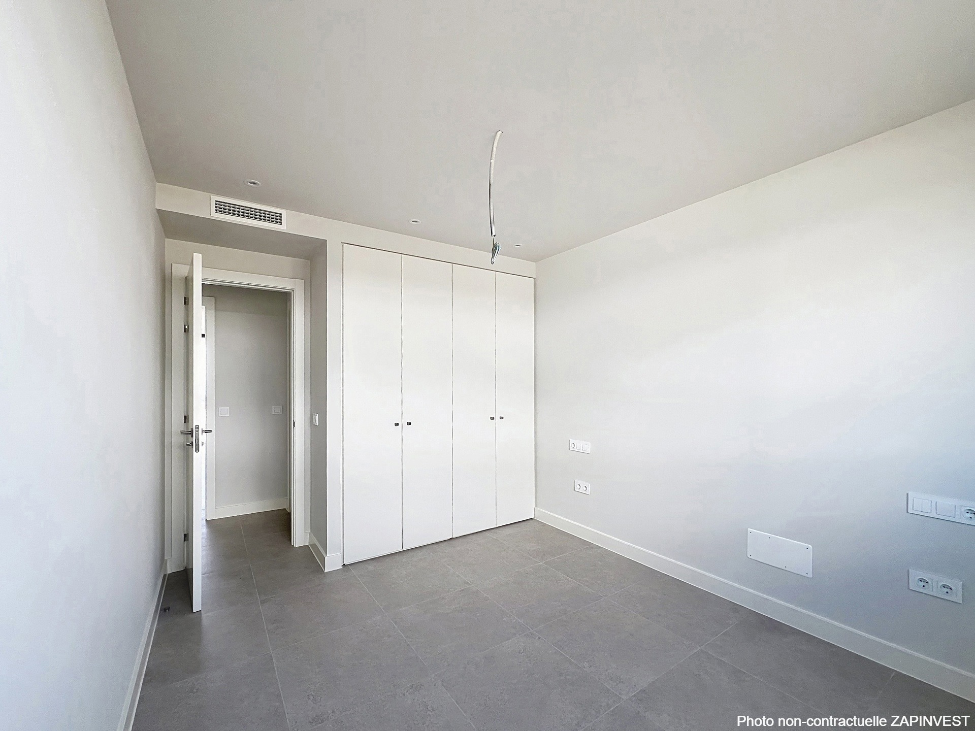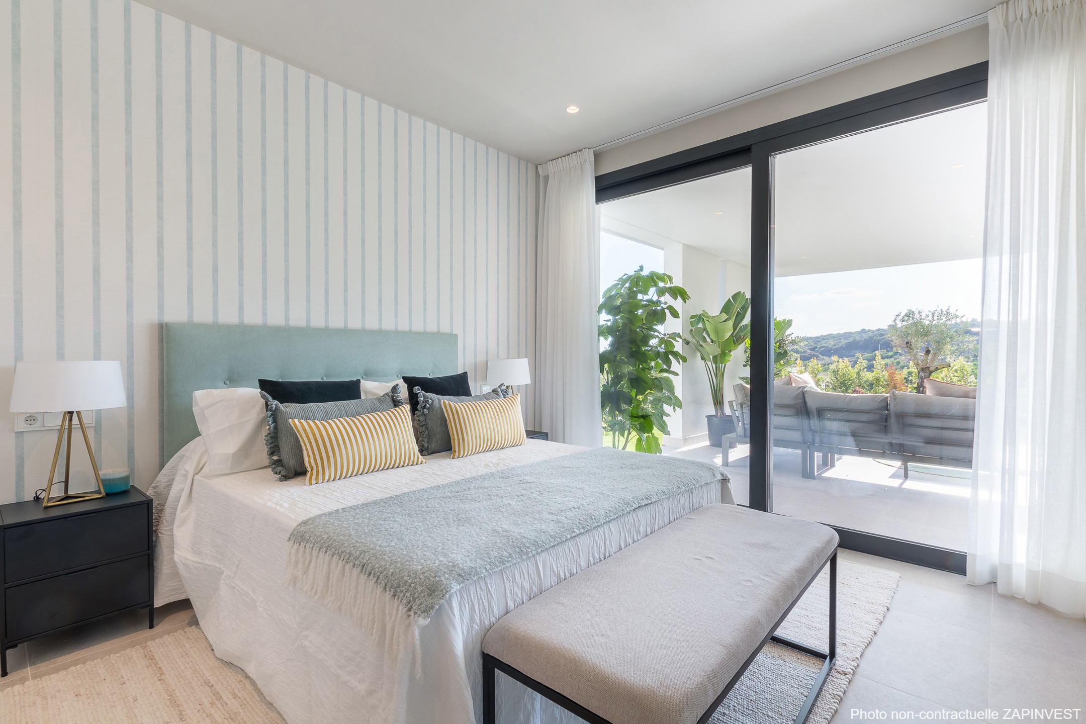Magnifique penthouse dans une toute nouvelle résidence. Il est composé de trois chambres et deux salles de bains pour une superficie de 110m2, d'un petit hall d’entrée qui donne à la fois sur l’espace cuisine et sur le salon séjour, avec accès direct sur la splendide terrasse de 44m2 avec un escalier vers le solarium de près de 100m2 avec pré-installation pour une cuisine d’été bénéficiant de vues panoramiques sur le golf, la nature et la mer (espace semi-ouvert et découvert).