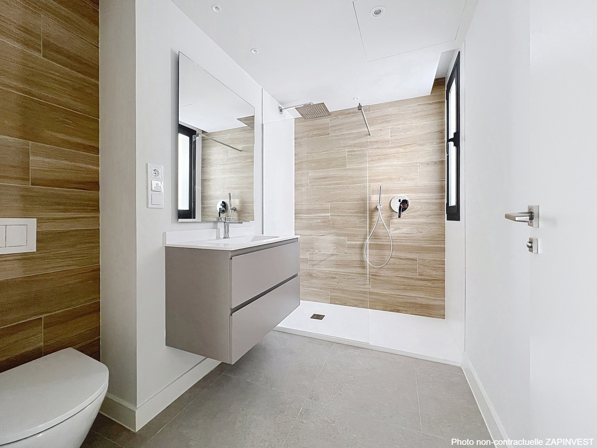 La chambre parentale avec sa salle de bains et son dressing en suite donne également directement sur la terrasse principale.
