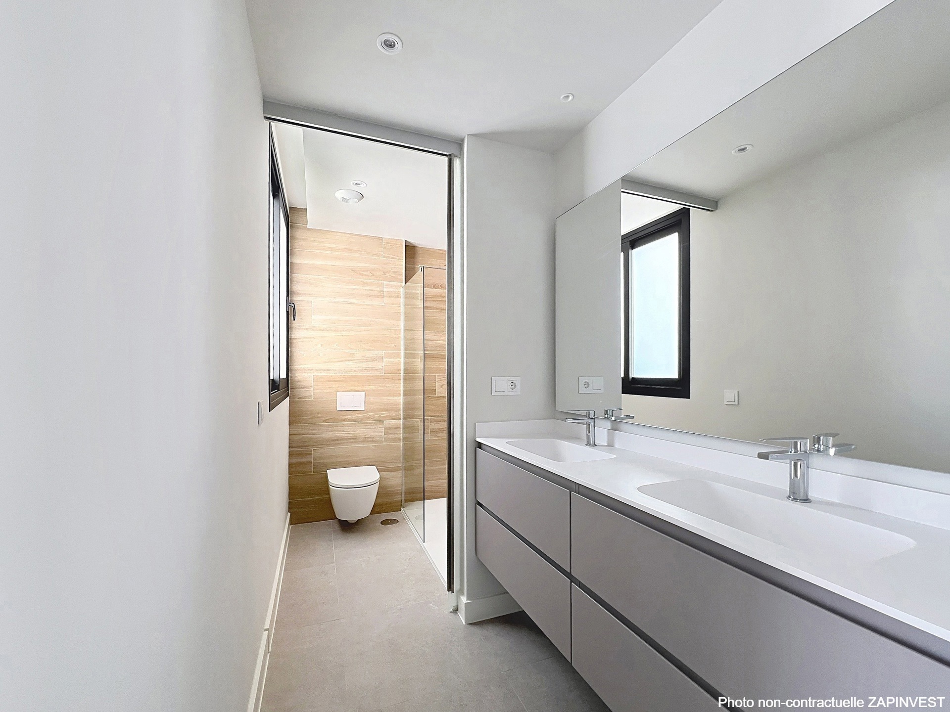 Magnifique penthouse dans une toute nouvelle résidence. Il est composé de trois chambres et deux salles de bains pour une superficie de 110m2, d'un petit hall d’entrée qui donne à la fois sur l’espace cuisine et sur le salon séjour, avec accès direct sur la splendide terrasse de 44m2 avec un esca...
