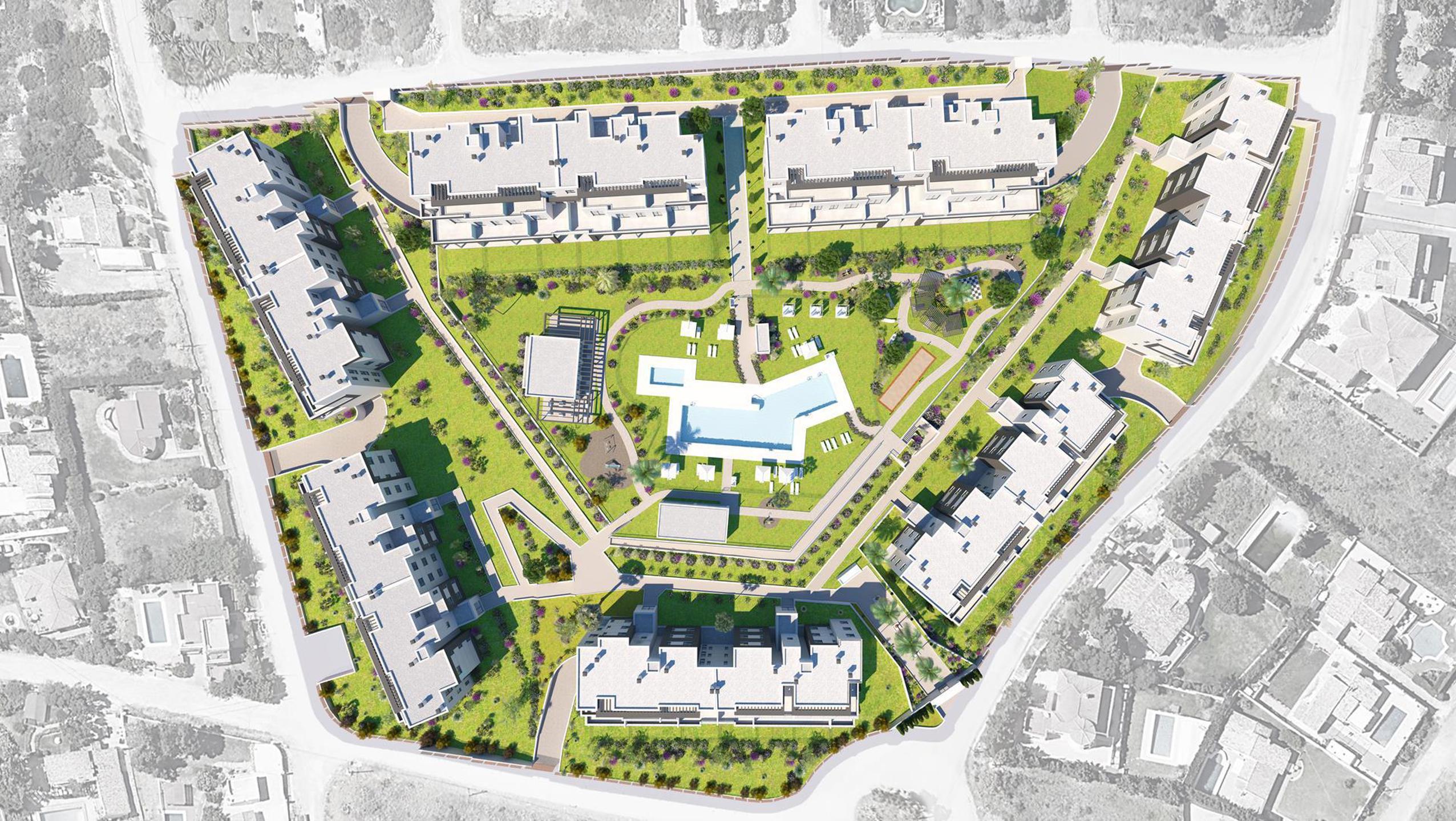 Tous les appartements sont vendus avec un emplacement de parking et une cave. La promotion comporte quelques espaces communs composés de jardins, piscines, salle de sport et « social club ».