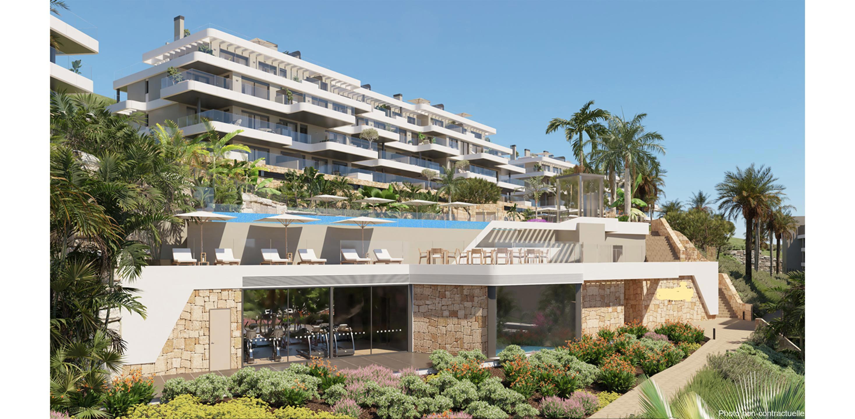Tous les appartements sont dotés de finitions de haute qualité, avec des cuisines entièrement équipées d'appareils Bosch et des salles de bains équipées de robinets Hansgrohe. Les appartements du rez-de-chaussée disposent de terrasses spacieuses, d'un jacuzzi et certains ont leur propre jardin. Les appartements du premier étage disposent de terrasses généreuses avec des vues spectaculaires. Les penthouses de deux chambres permettent de profiter pleinement du mode de vie intérieur/extérieur offert par le climat fantastique de la Costa del Sol.